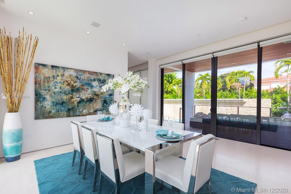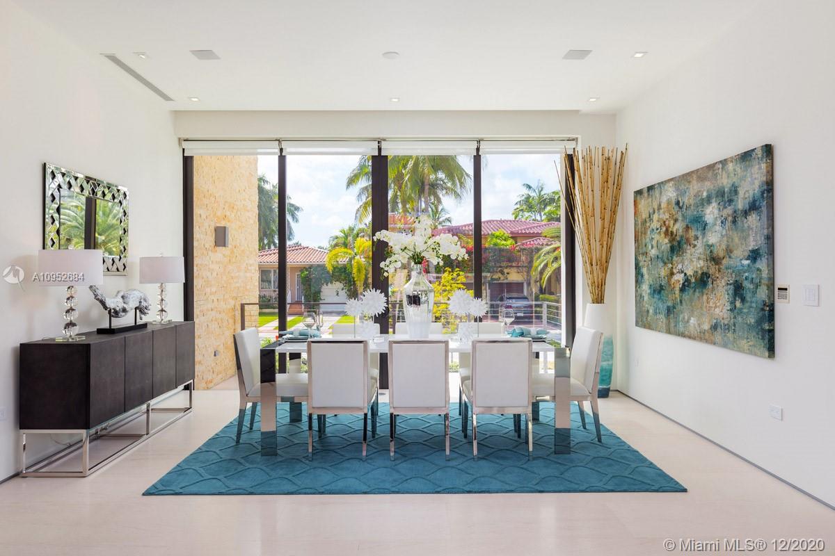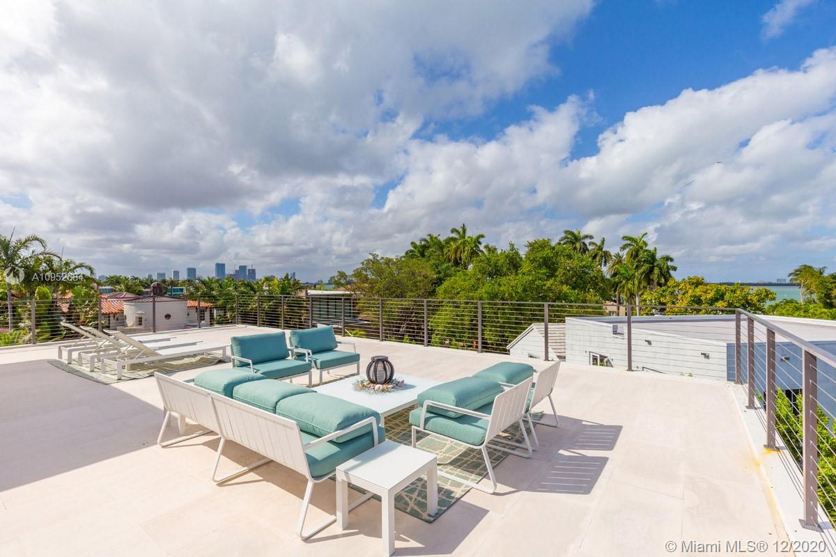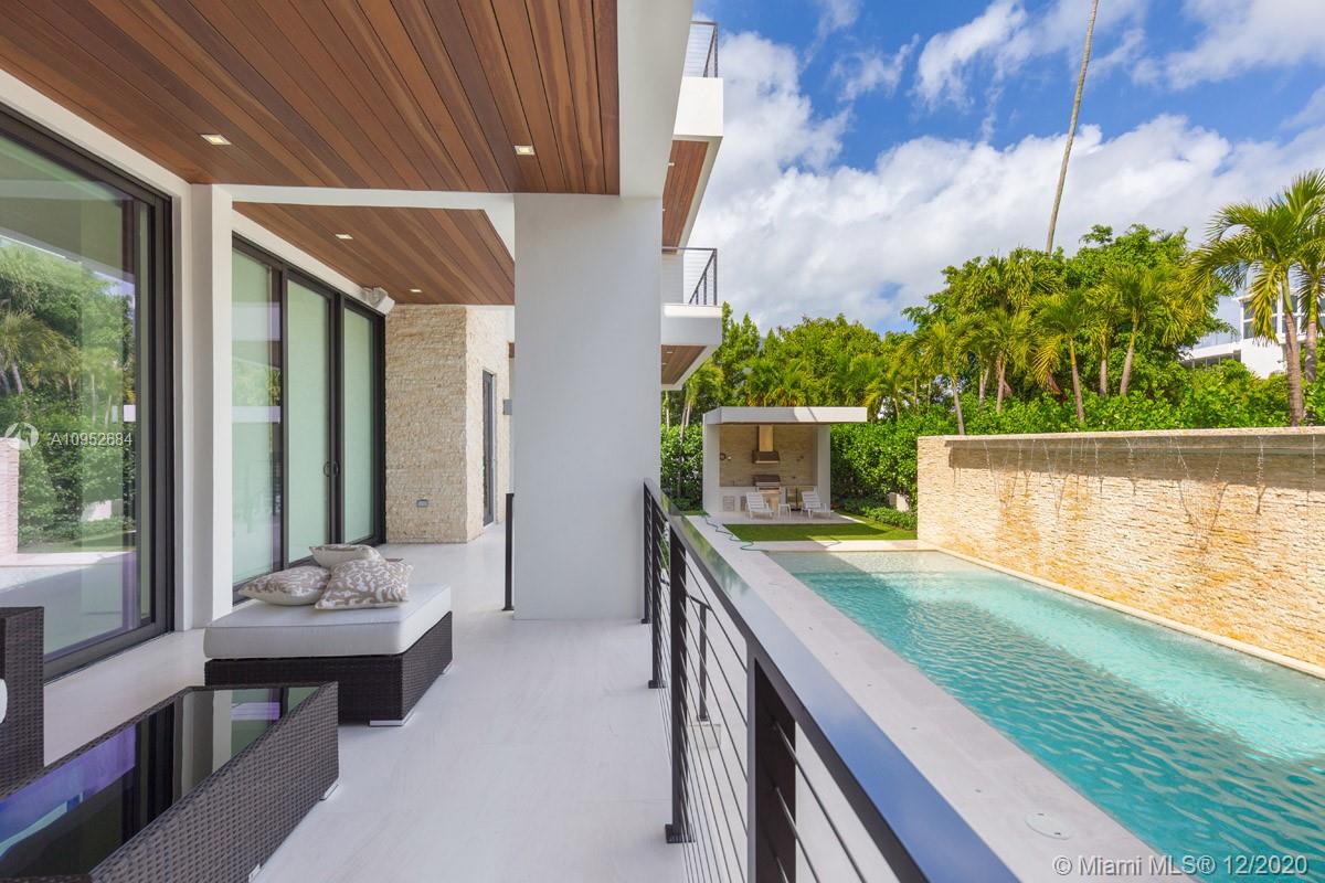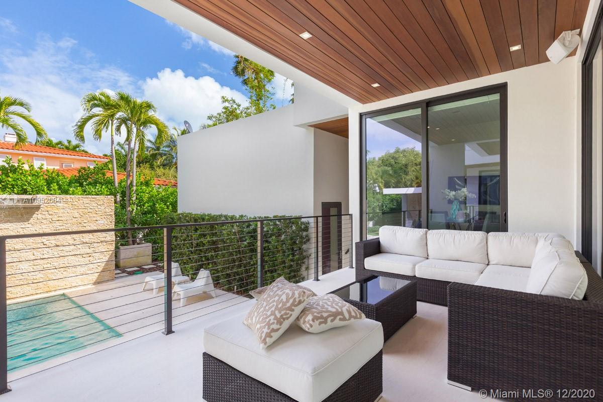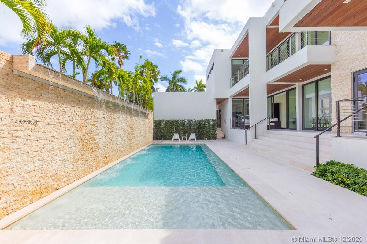This contemporary, new construction (2015) home by Architect Ralph Choeff features 5 bedrooms and 5,038 SF of adjusted living space. This designer home offers high ceilings, lots of natural light, a modern gas fireplace and top-of-the-line finishes & appliances such as a smart Lutron system, motorized window treatment and a sound system. Large bedrooms with generous built-in closets and private terraces. The state-of the-art kitchen comes with Italian cabinetry and Miele appliances. The 11.250 SF lot includes a large pool deck with a heated pool, waterfall feature, jacuzzi and shower. Additionally, a cabana with built-in summer kitchen and soft lighting ideal for relaxation and 'al fresco’ dining, A +1,000 SF of roof top terrace with stunning views of the water and the Miami skyline.