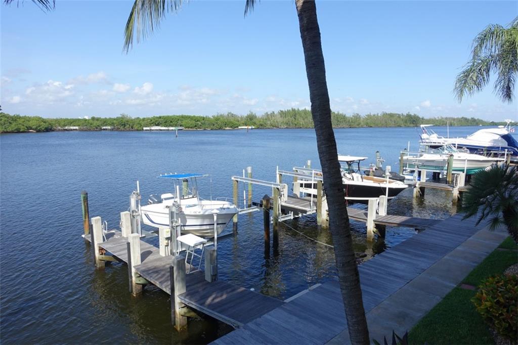 This FULLY FURNISHED 3 bedroom, 3.5 bathroom, beautifully remodeled townhouse sits directly on the Intracoastal waterway across the street from THE BEACH with its own 17' wide DEEDED BOAT SLIP and dock with power! Ocean access by boat is just a few minutes away with NO FIXED BRIDGES! It has an attached garage, an additional assigned parking space, laundry on main bedroom level, each bedroom with own bathroom, and TWO POOLS directly facing the Intracoastal. New AC in 2020. Turn-key and ready to enjoy!