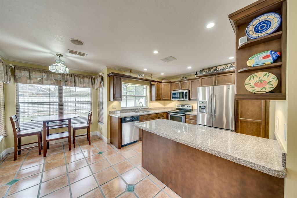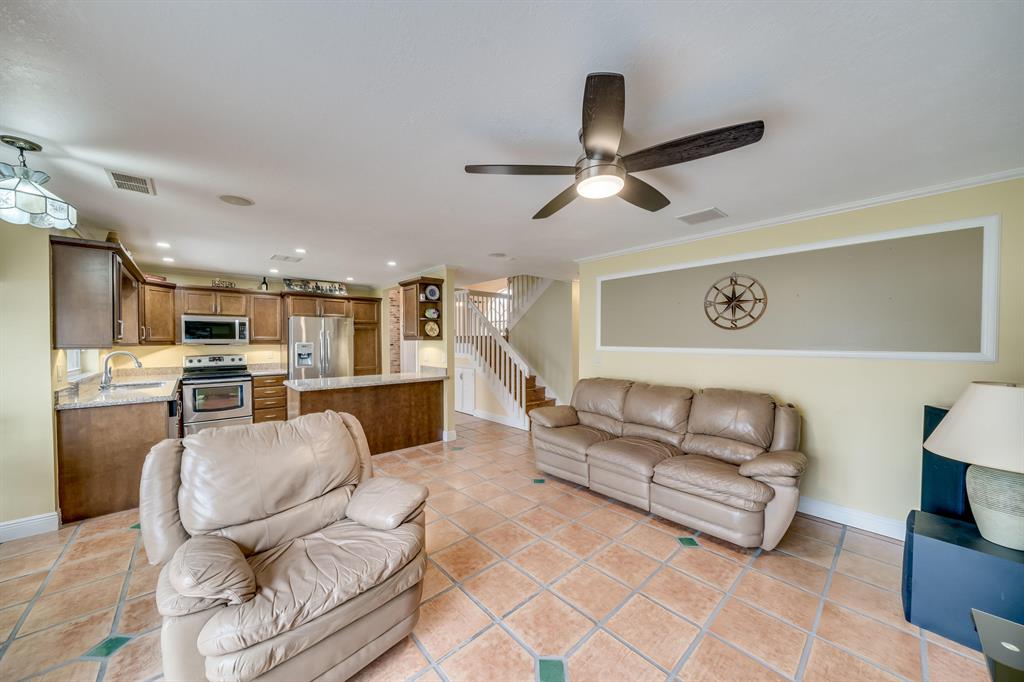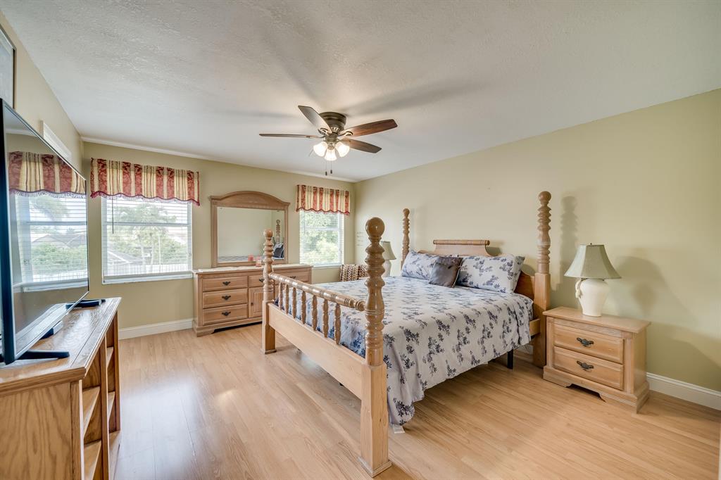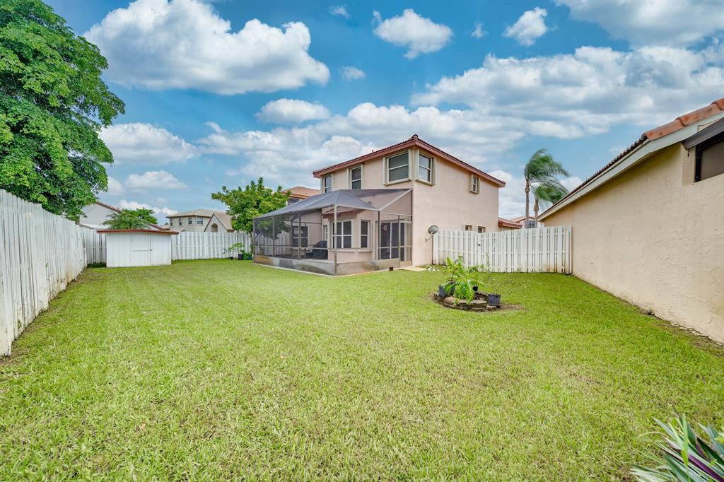 Situated on a culdesac, you will find plenty of space for family living. Roomy, two story home with soaring ceilings in the bright living and dining area, recently updated kitchen with granite and SS appliances. First floor bedroom and full bath, large laundry room. Tile and laminate flooring throughout. Large screened lanai surrounded by fenced backyard with shed. Custom storage under stairway and also in garage. Accordian shutters and HOA includes community pool within walking distance and cable/internet. Move right in with peace of mind with a 1 year Home Warranty.