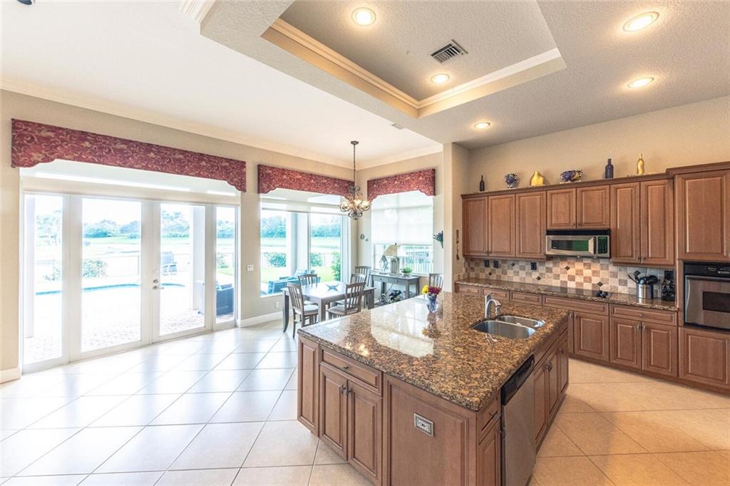 Cul-de-sac, waterfront, oversized 1/3 acre homesite...one of the BEST lots in Heron Bay! Outstanding features include: 24" diagonally laid neutral tile in living areas w/beautiful mosaic at entry foyer; triple split bedroom plan; spacious family room (wall unit included) w/views of pool & lake; large kitchen (open to family room) w/huge center island, granite counters, tumblestone backsplash, custom cabinets, stainless steel appliances & pantry closet; gorgeous master suite w/view to lake & pool, double tray/triple crown ceiling, & two walk-in closets; master bath w/separate quartz vanities, Roman tub, spacious shower & private commode; surround sound system; & large, open loggia; resurfaced, heated pool w/sun shelf; huge, fenced yard & accordion shutters! Wait until you see this VIEW!