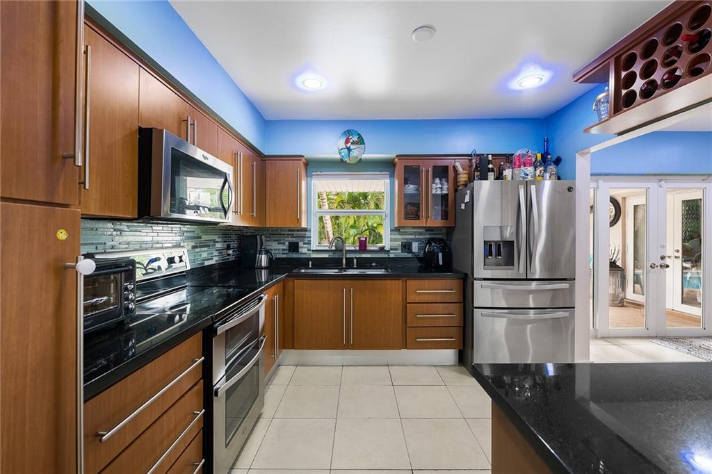 Beautiful single story pool home with modern updates. 3 Bed / 2 Bath + office. Showers have digital LED panels, body jets and rainfall shower heads. Kitchen has granite counters, stainless steel appliances, wine rack, and buffet. Impact French doors lead to the pool and covered patio. Laundry room with full size washer and dryer, laundry sink, counter and storage cabinets. LED lighting and smart home features throughout. Large circular drive with 1 car garage. Newer AC and updated electrical panel. This is the perfect home for Florida living.