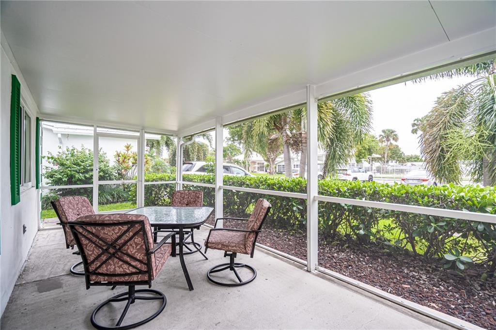 Renovated 2/2 featuring Kitchen cabinets with granite countertops and stainless steel appliances. A/C Replaced inside & out 2016. Bathrooms are modern with granite top vanities, tiled walls and fixtures. 24" porcelain tile throughout the living area.Step through sliders to spacious Florida room. Hurricane impact glass windows & garage door, 30'x10' enclosed screen porch perfect for entertaining. New Electrical panel, outside lighting. Double wide driveway. And more!!!!! NO LAND LEASE -55+ Community