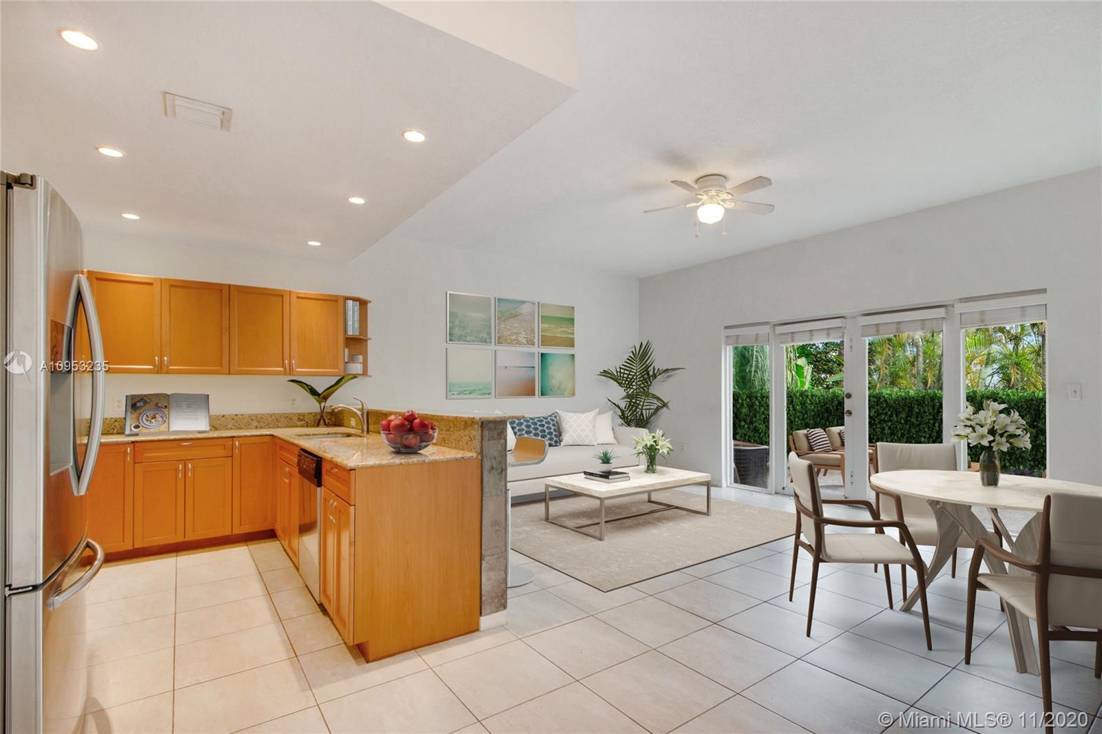 2 story townhouse with private garage and private fenced patio. This perfect TH has 3 well sized bedrooms, 2 large bathrooms and a powder room too! All the comforts of a house without the expense. High ceilings soaring above 11 feet. Open eat-in kitchen with granite tops & excellent storage spaces Expansive indoor & outdoor living space with a private backyard patio! All 3 bedrooms located upstairs with finished closets, ceiling fans & natural light. Master has private balcony. Garage has washer, dryer, water heater, garage door remote. LOW HOA and complex has a pool. Short distance to Miami Shores country club, golf course and aquatic center! Easy to show and Freshly painted.