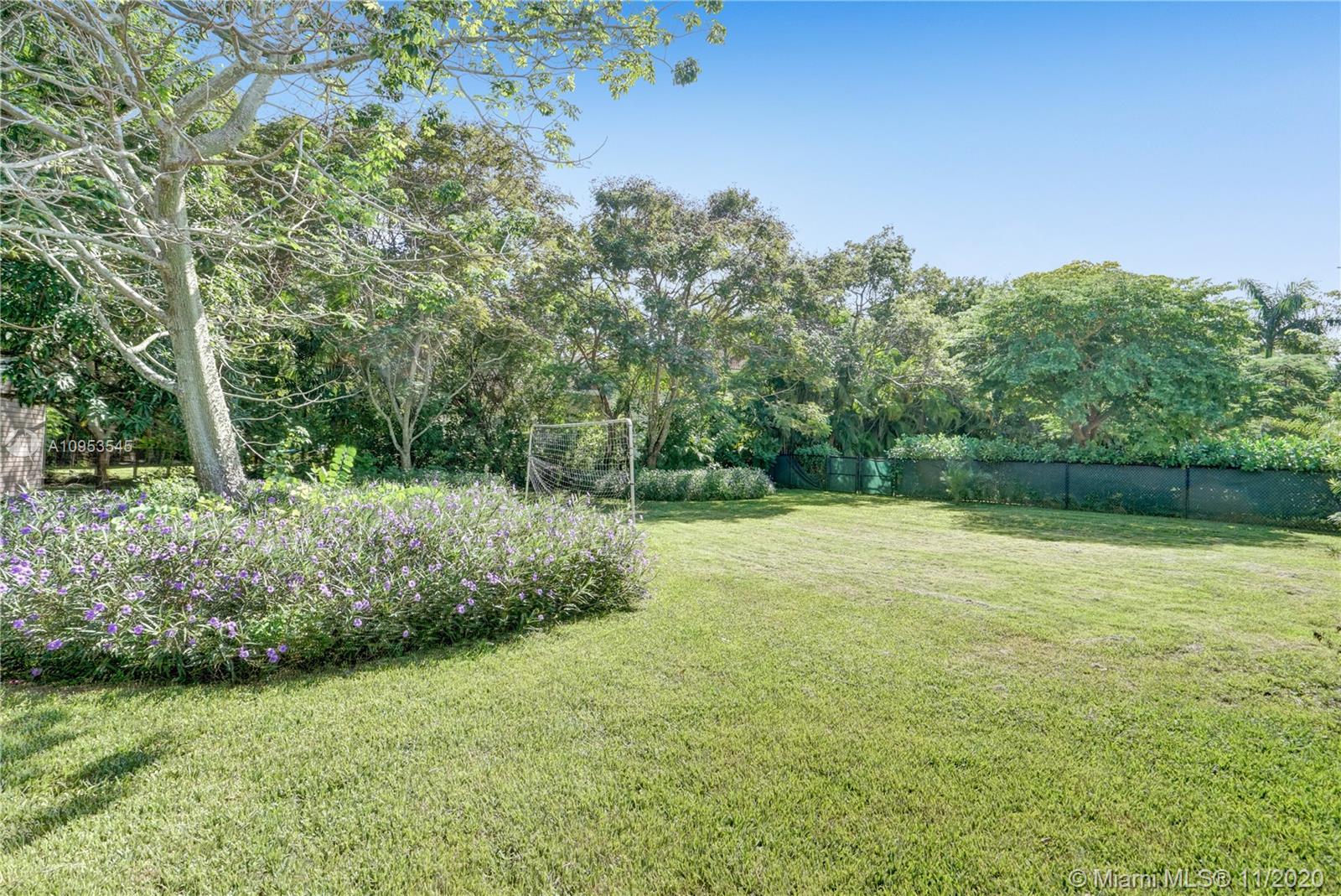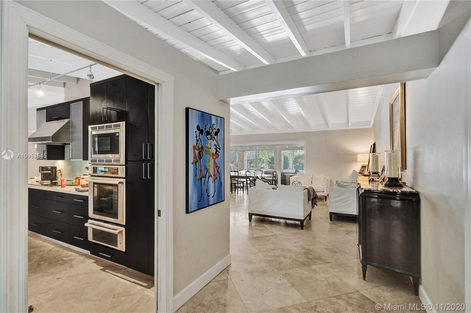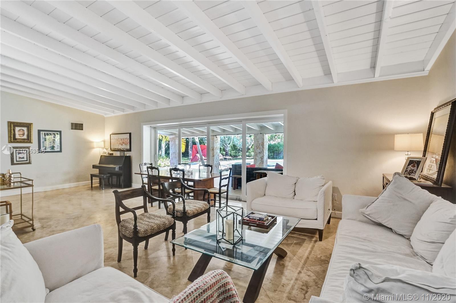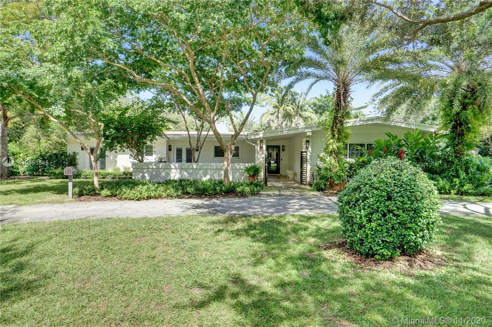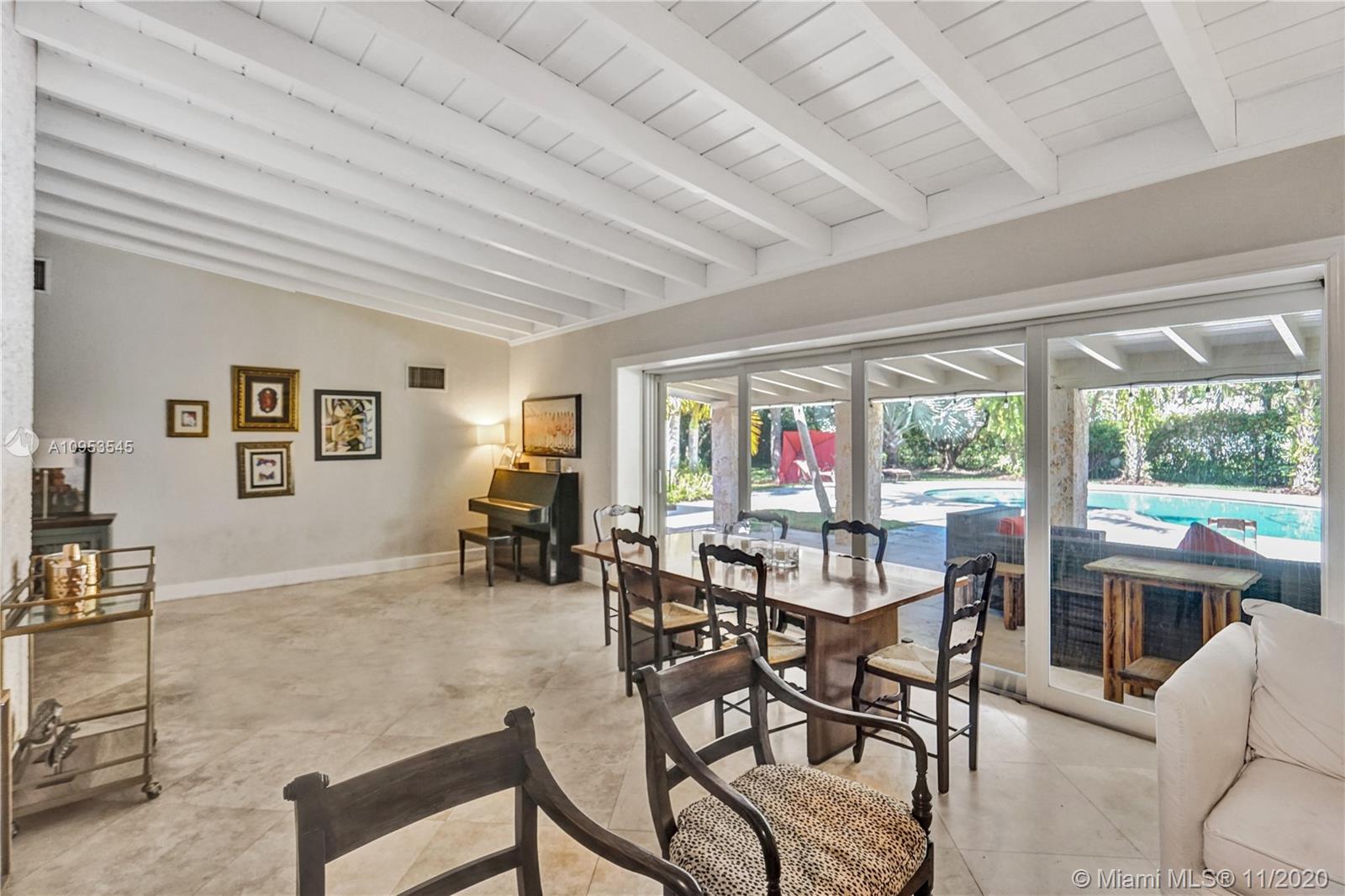Resort living in Pinecrest! Tranquil courtyard framed by keystone columns invites you into this lovely 4 bed 3 bath home. Sitting on a lush builder's acre of fruit trees and flowering palms, this charmer has it all. Light and bright and tastefully updated, the 2,869sf home has wood-beamed cathedral ceilings, stunning keystone fireplace, Saturnia marble floors, updated contemporary kitchen and plenty of space for entertaining. Sliding doors open to outdoor living space and spectacular resort style backyard with free form pool, 500sf Tiki Hut, and loads of yard. The split plan provides three bedrooms and two baths on one side, and the 4th bed/office, bath, laundry and large family/game room on the other. Gorgeous landscape lighting and invisible fence for dogs are bonus amenities.