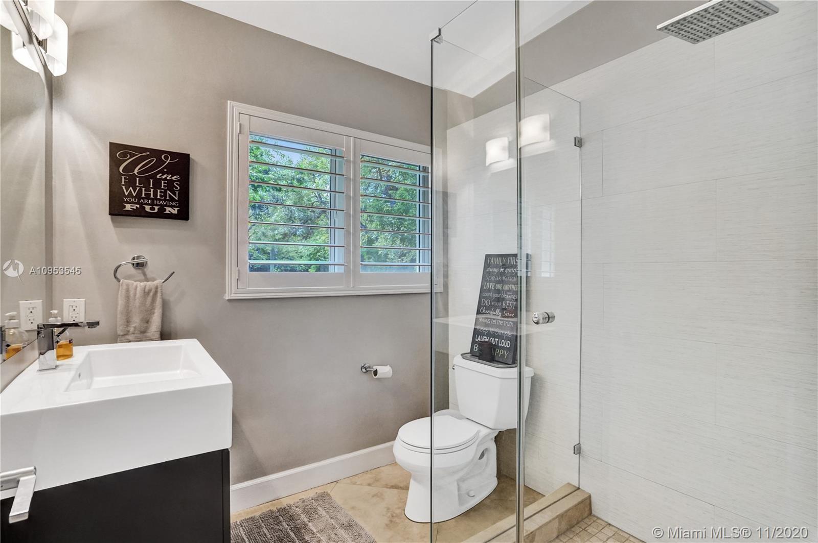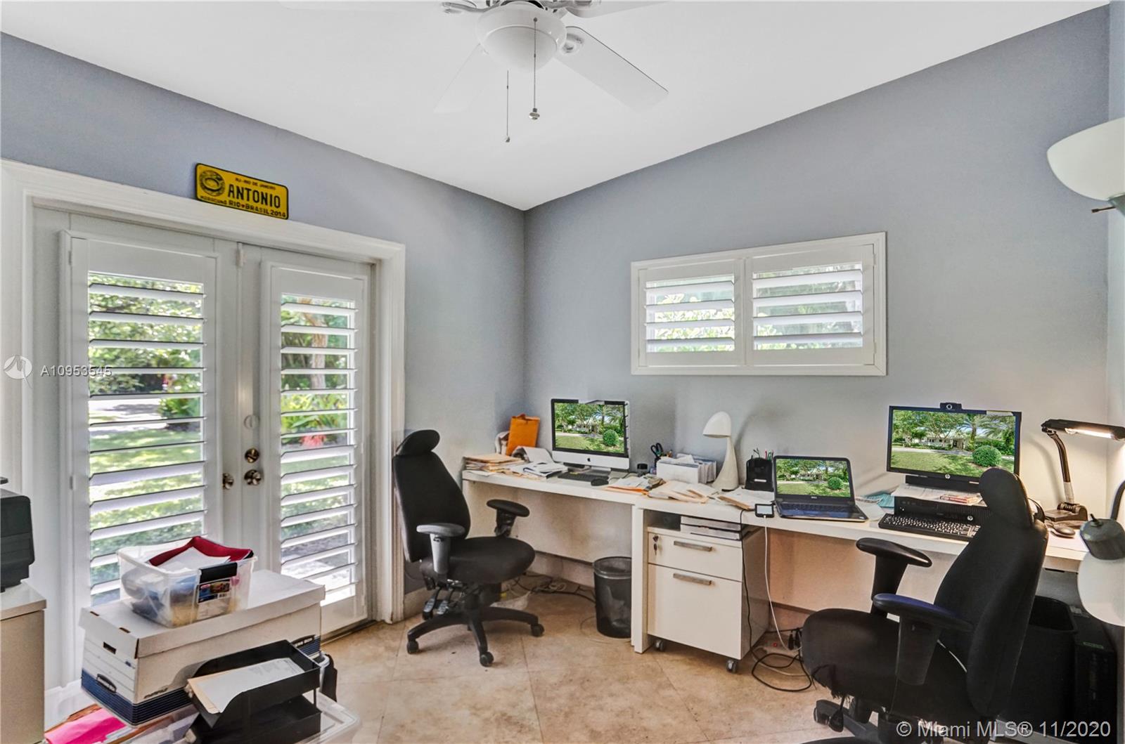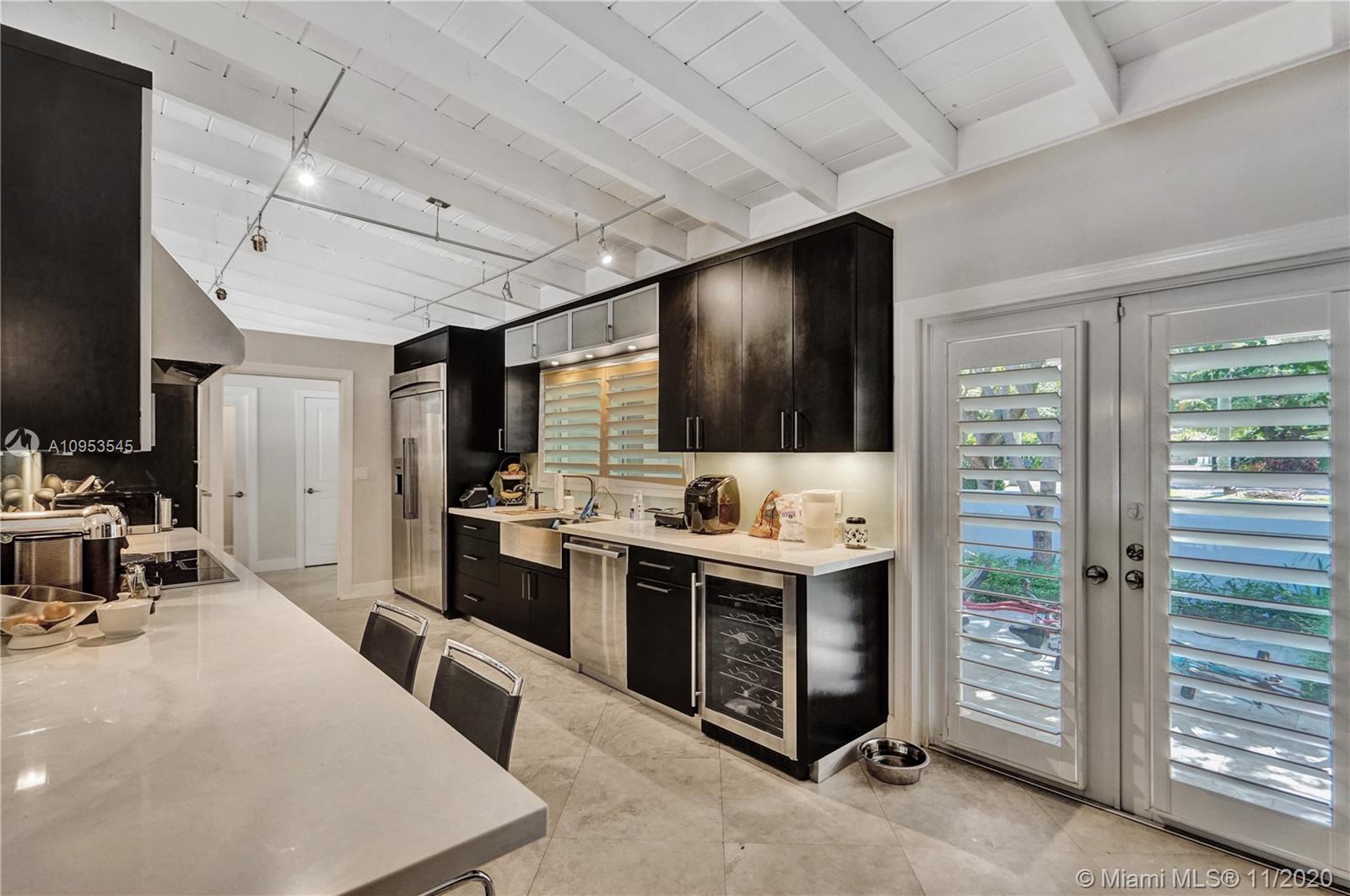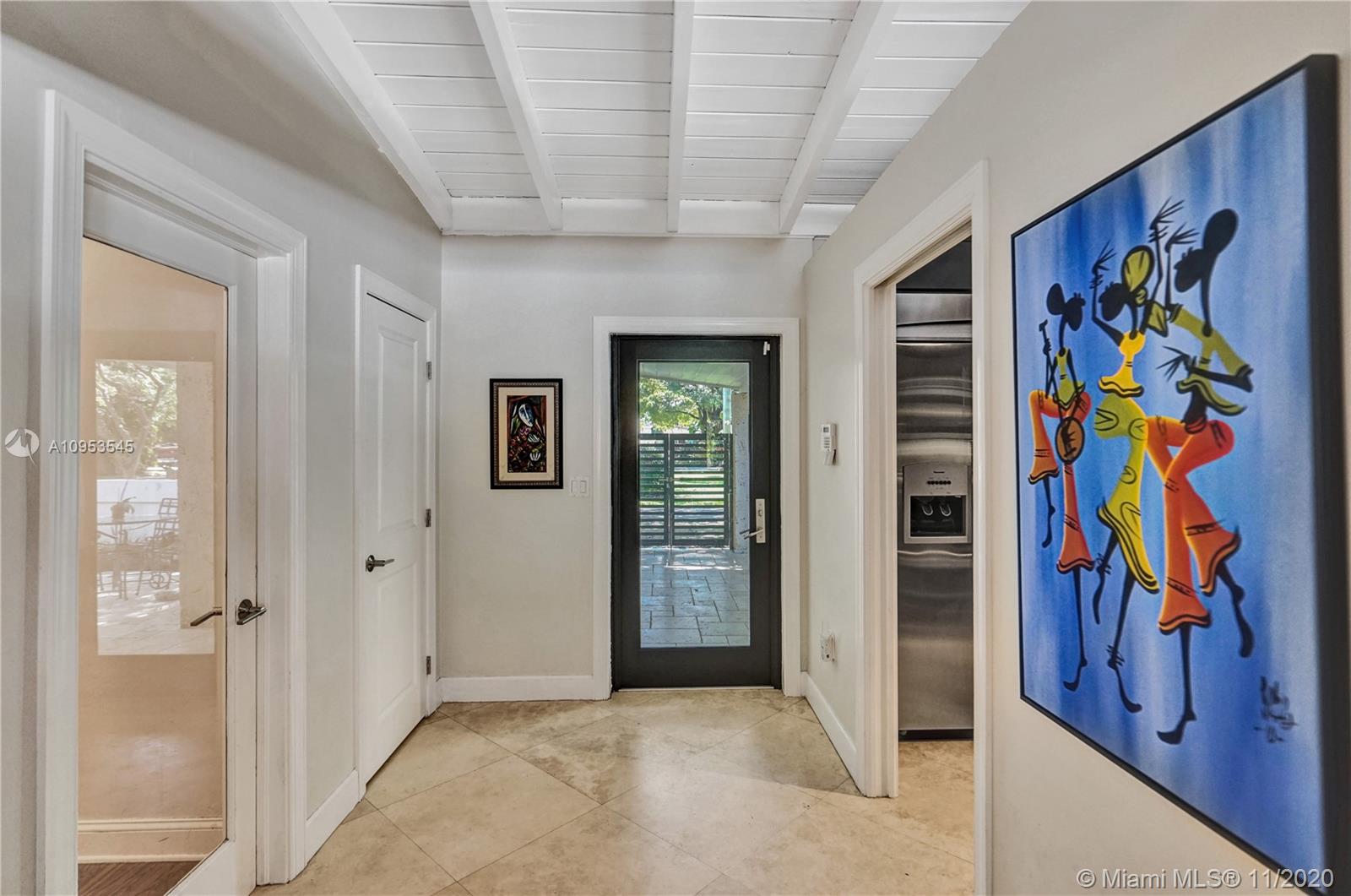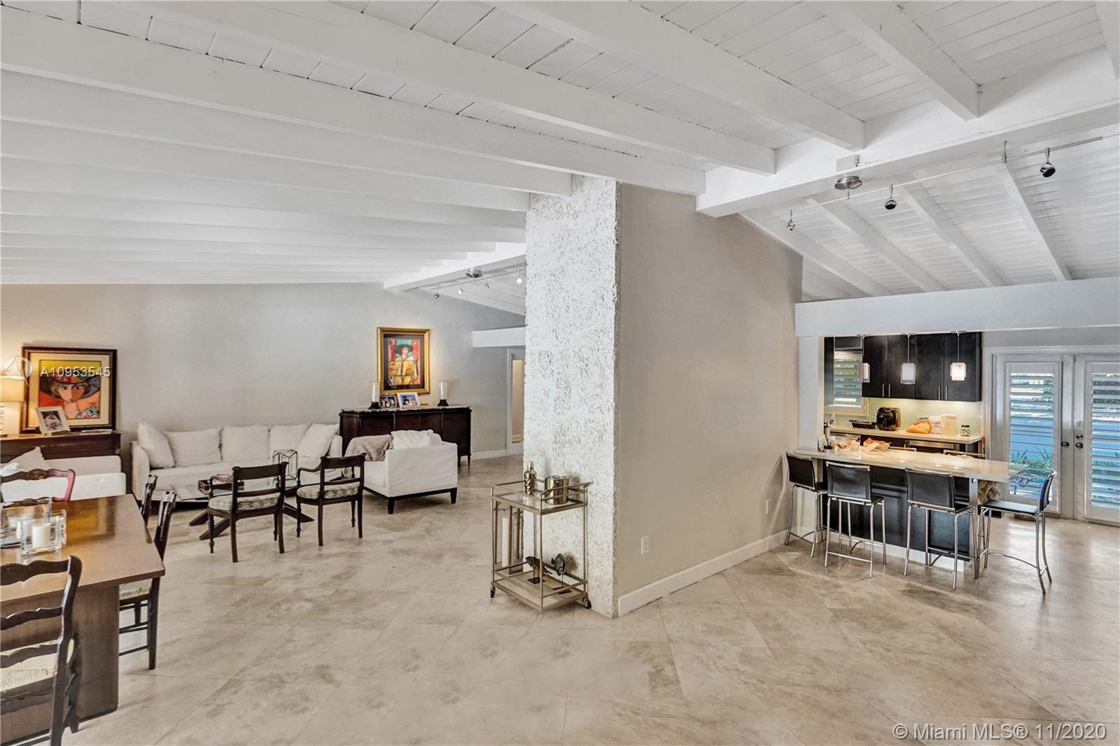 Resort living in Pinecrest! Tranquil courtyard framed by keystone columns invites you into this lovely 4 bed 3 bath home. Sitting on a lush builder's acre of fruit trees and flowering palms, this charmer has it all. Light and bright and tastefully updated, the 2,869sf home has wood-beamed cathedral ceilings, stunning keystone fireplace, Saturnia marble floors, updated contemporary kitchen and plenty of space for entertaining. Sliding doors open to outdoor living space and spectacular resort style backyard with free form pool, 500sf Tiki Hut, and loads of yard. The split plan provides three bedrooms and two baths on one side, and the 4th bed/office, bath, laundry and large family/game room on the other. Gorgeous landscape lighting and invisible fence for dogs are bonus amenities.