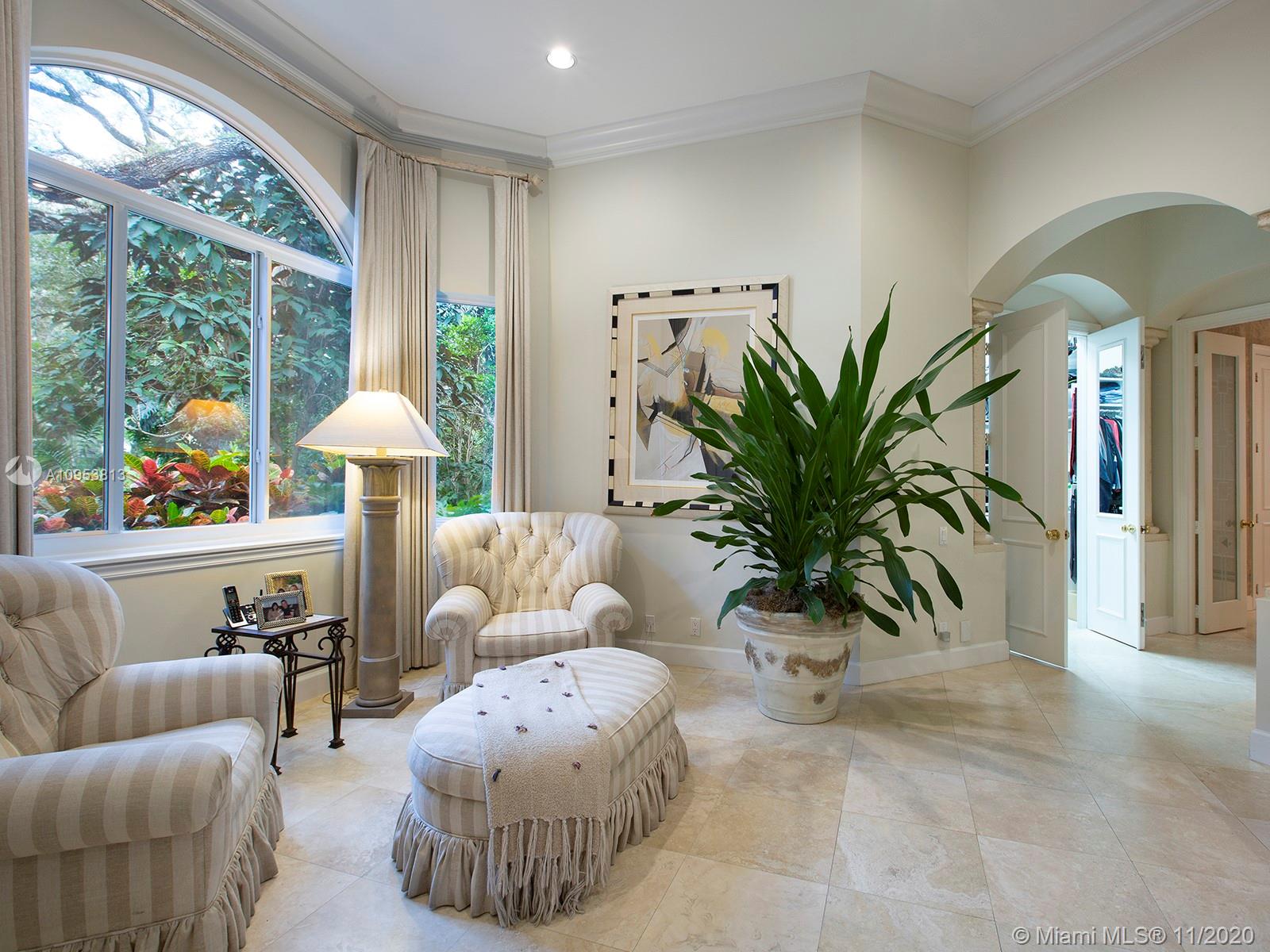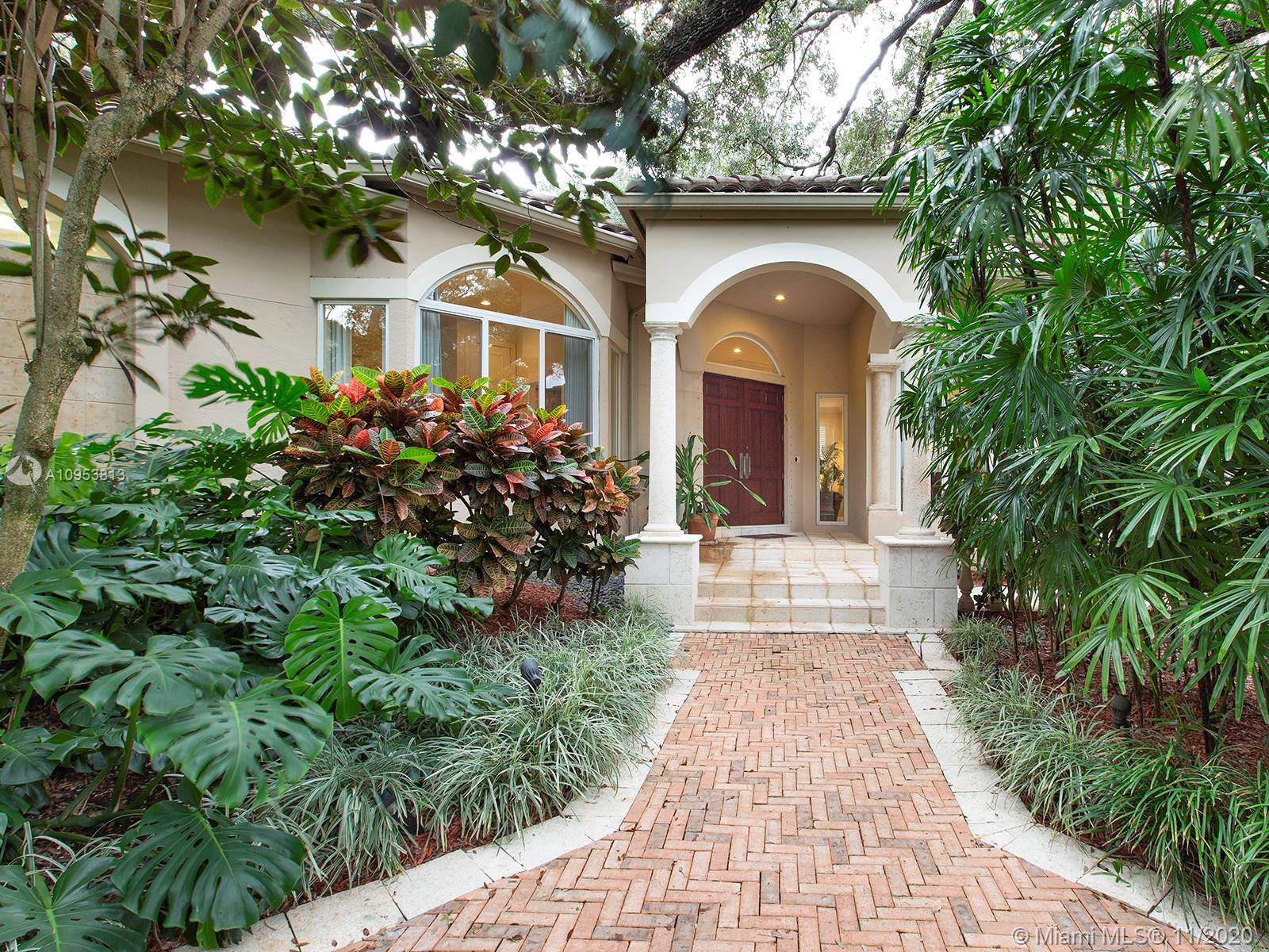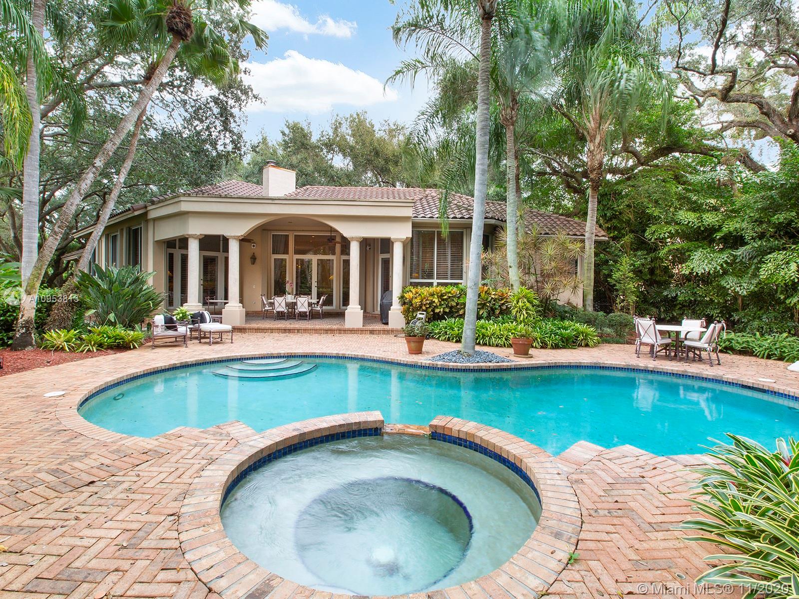 Sophisticated, stunning, family home with exceptional floor plan, detail and design on a gorgeous mature oak studded lot in rear south cul-de-sac of Arboretum, a rare gated NE Pinecrest community of only 11 homes near Pinecrest elementary school and the famous Pinecrest Wayside Market. Impeccably maintained, one story family home with new roof in 2015, Brookman-Fels quality construction and custom finishes throughout the residence. Split large master with sitting room/office, separate 4/3 children's wing includes second family room. Gorgeous private pool/patio area, 3-car garage, very high ceilings throughout, large rooms, impact glass in front, built-ins, indoor laundry room, fireplace, and more.