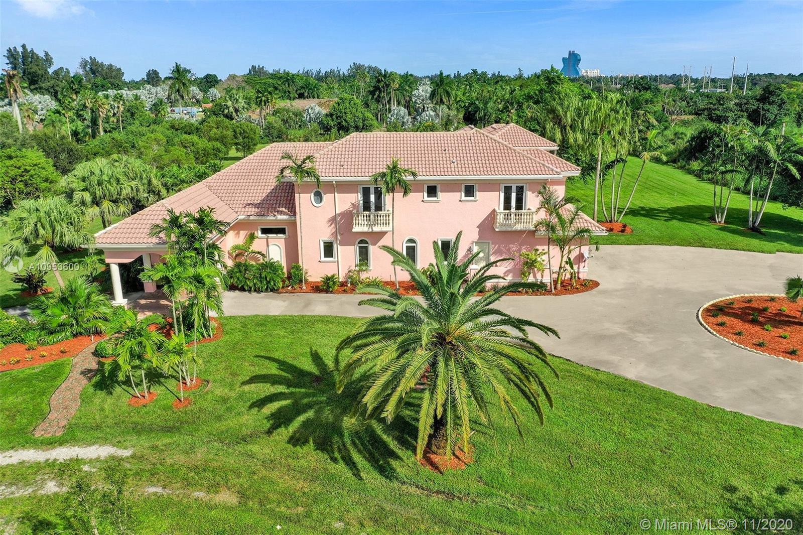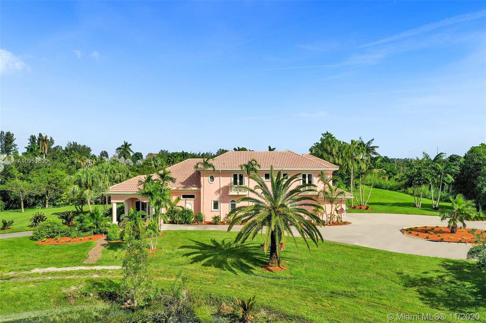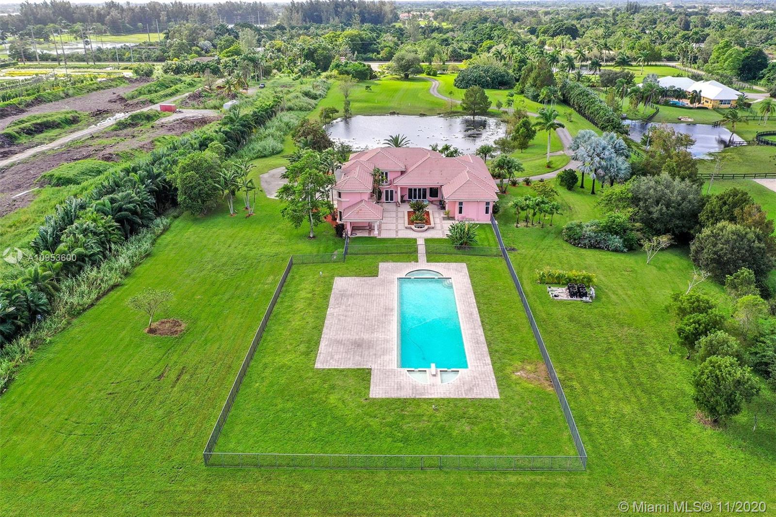 Fabulous opportunity for a sprawling, private estate in the heart of East Davie. 10 beautiful and quiet acres await you with easy access to major roadways, making any commute a breeze. This secluded, comfortable and unique home offers 8 bedrooms and 7.5 baths with a separate guest quarters; 6 bedrooms of which are their own private suites. Effortlessly host friends and family with the privacy afforded by this well-executed floor plan. This generous home includes a large 3 car garage, an incredible and refreshing 74 foot pool with an additional spa, hurricane impact windows, the comfort of a 4-zone HVAC system & plenty of room for horses. Take a relaxing stroll down the winding drive and discover your new luxurious paradise.
