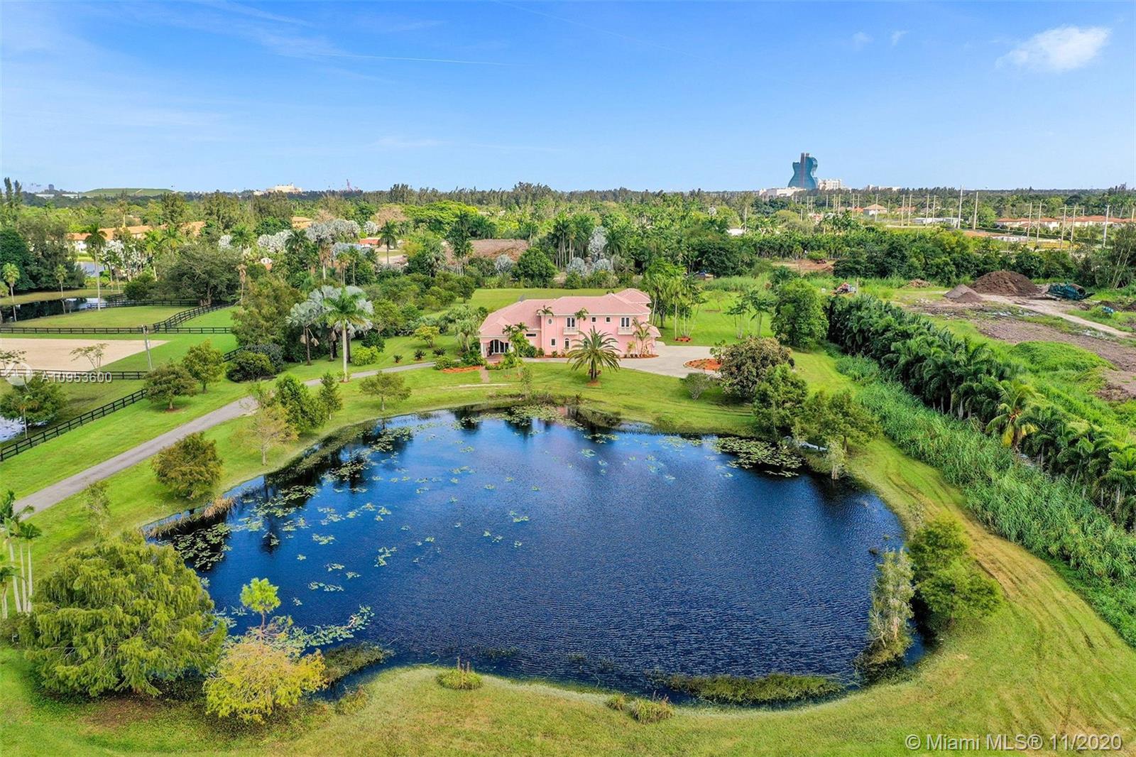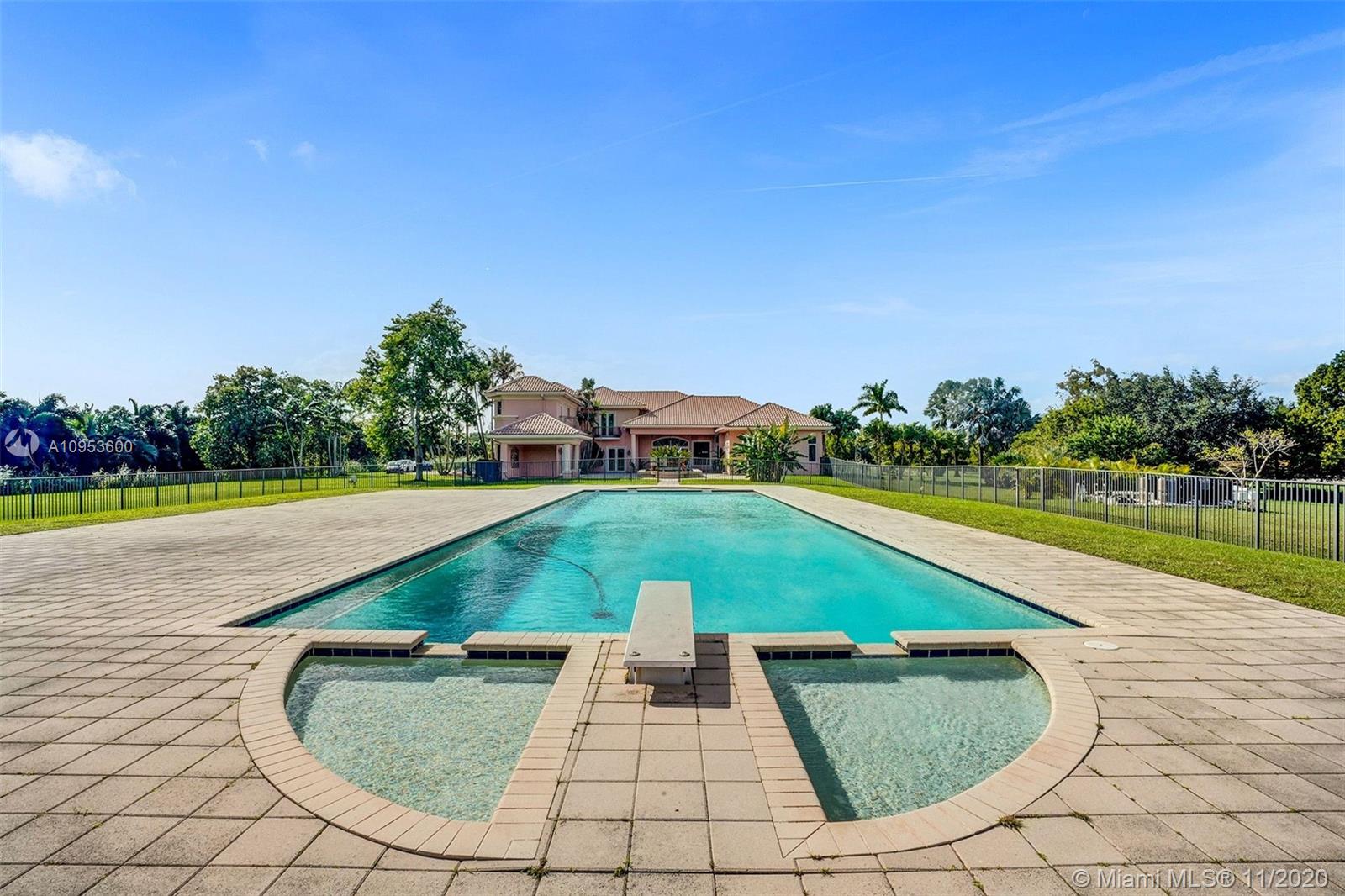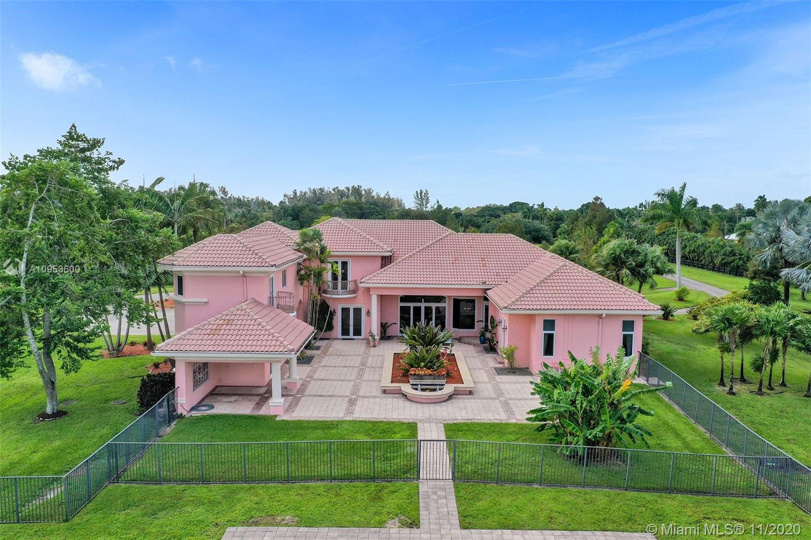 Fabulous opportunity for a sprawling, private estate in the heart of East Davie. 10 beautiful and quiet acres await you with easy access to major roadways, making any commute a breeze. This secluded, comfortable and unique home offers 8 bedrooms and 7.5 baths with a separate guest quarters; 6 bedrooms of which are their own private suites. Effortlessly host friends and family with the privacy afforded by this well-executed floor plan. This generous home includes a large 3 car garage, an incredible and refreshing 74 foot pool with an additional spa, hurricane impact windows, the comfort of a 4-zone HVAC system & plenty of room for horses. Take a relaxing stroll down the winding drive and discover your new luxurious paradise.