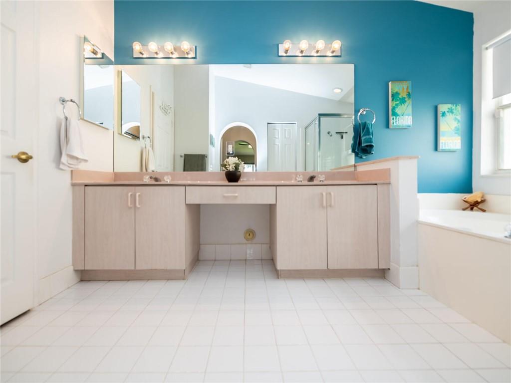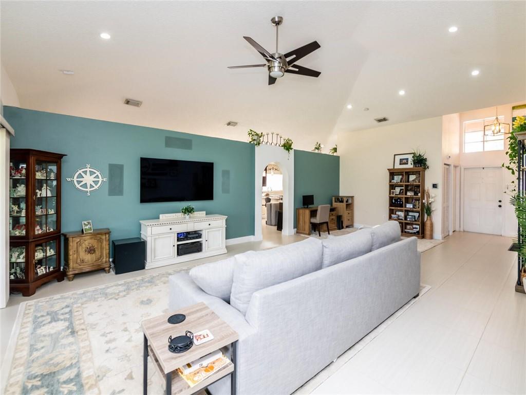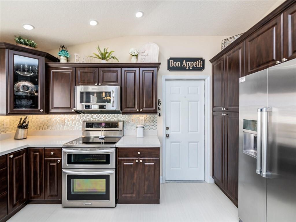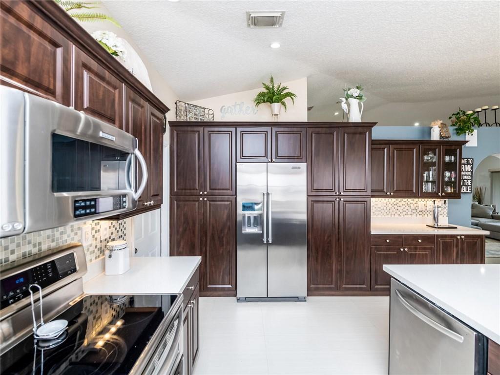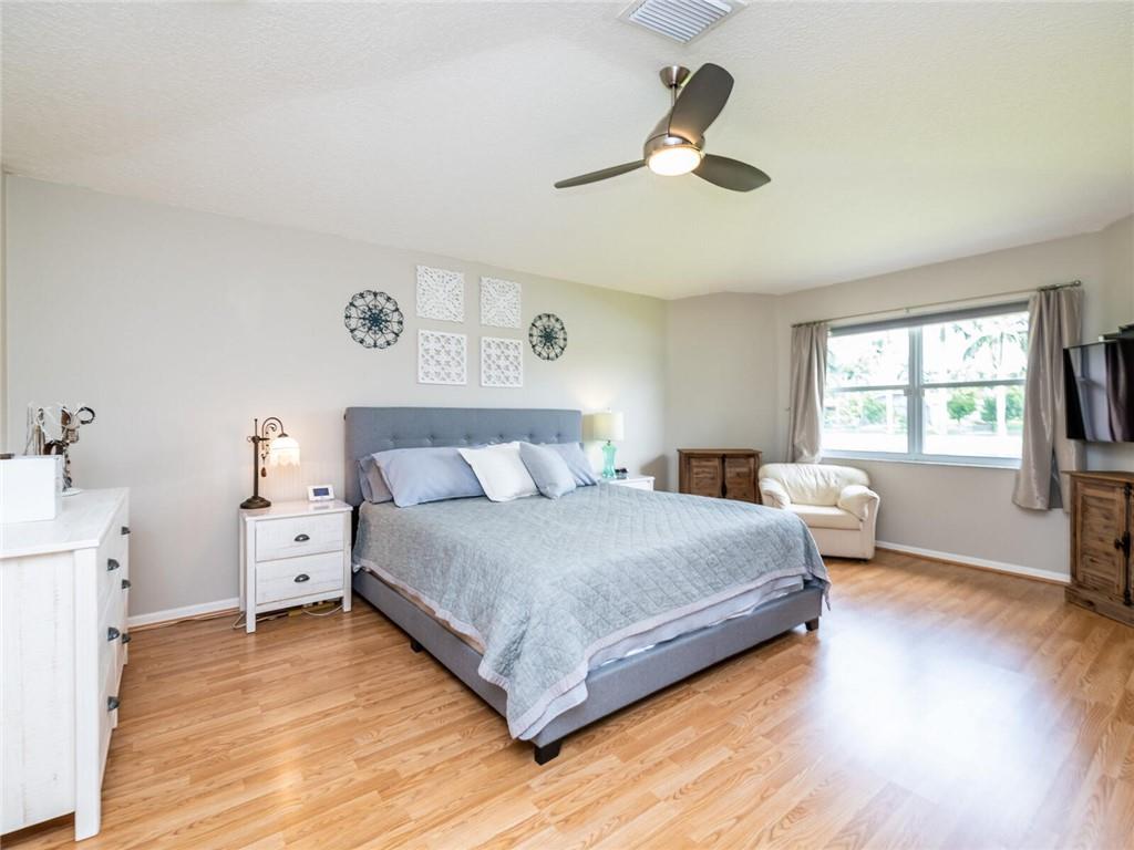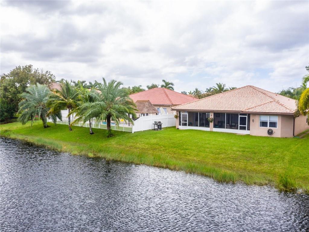 Beautiful home with gorgeous view of the lake in exclusive WINDSOR PALMS gated community. Very open and spacious living areas, both living room and family room, with tile throughout. Split-bedroom floor plan. Large, spacious master bedroom with dual walk-in closets and a view of the lake. Master bedroom and living spaces open to a screened-in patio. Stunning gourmet kitchen with dark wood cabinets, quartz countertops, and stainless-steel appliances. Great curb appeal. Priced to sell quickly!