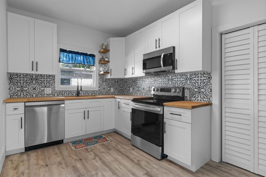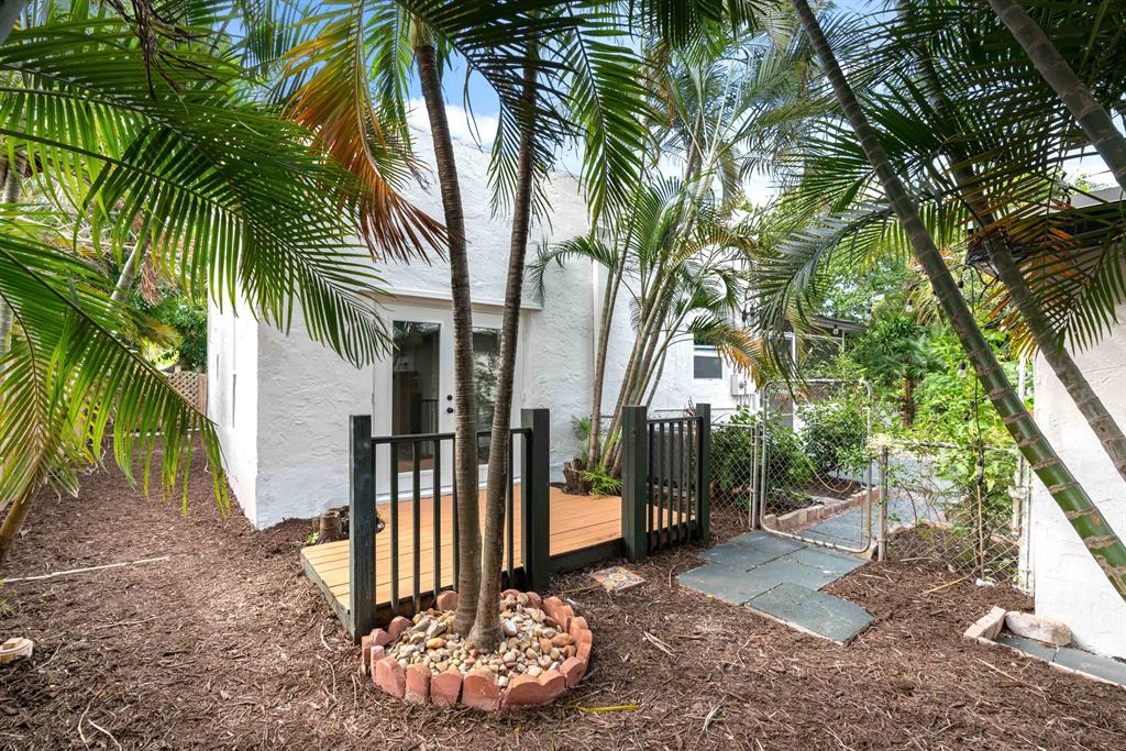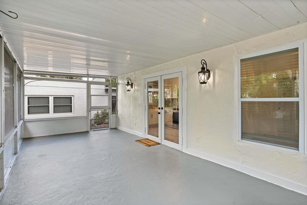 Incredible investment opportunity! Adorable 1920s Mediterranean 2 bedroom, 2 bath home with detached 1 bedroom, 1 bath legal guest cottage! NEW roof on both units. Main house boasts full impact windows and doors, waterproof luxury vinyl plank flooring throughout, two fully remodeled bathrooms, a charming updated kitchen with butcher block countertops and stainless steel appliances and a decorative fireplace. Private deck from each bedroom plus a spacious screened porch off the kitchen for ample outdoor living! Cottage is leased through December. Tiled living areas, LVT flooring in the bedroom and an updated kitchen and bath with private covered porch at the front and fenced courtyard at the rear. Separate electric meters, shared water. Second driveway for tenant parking!