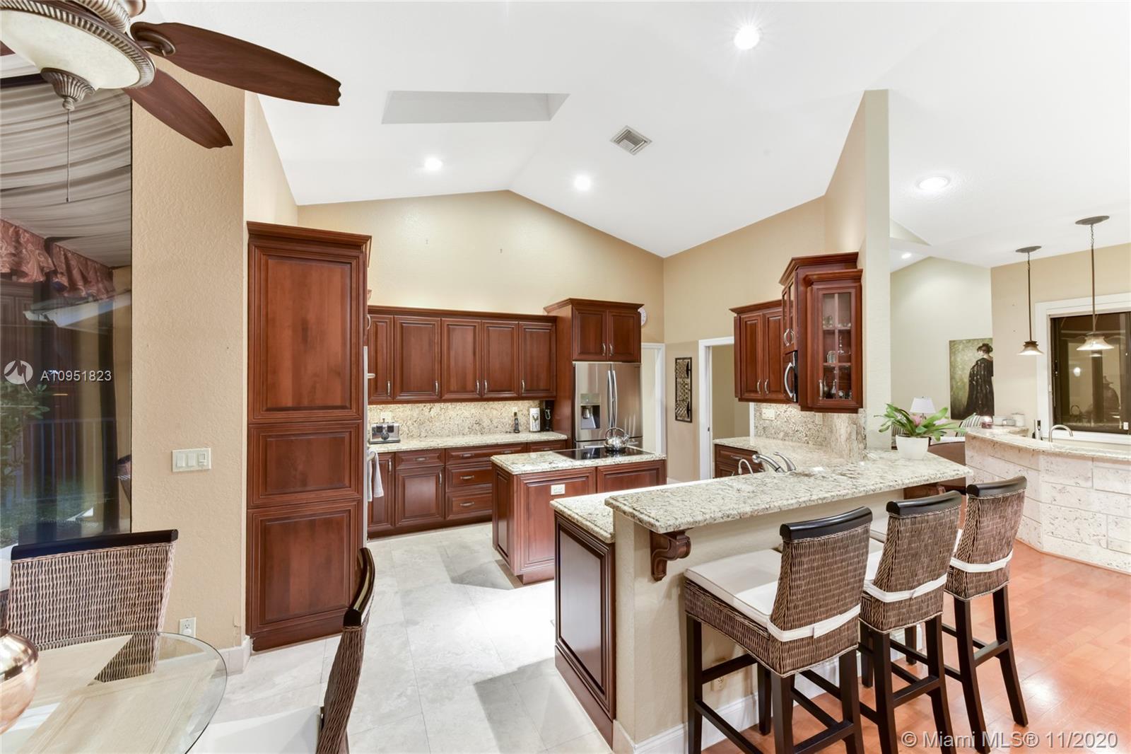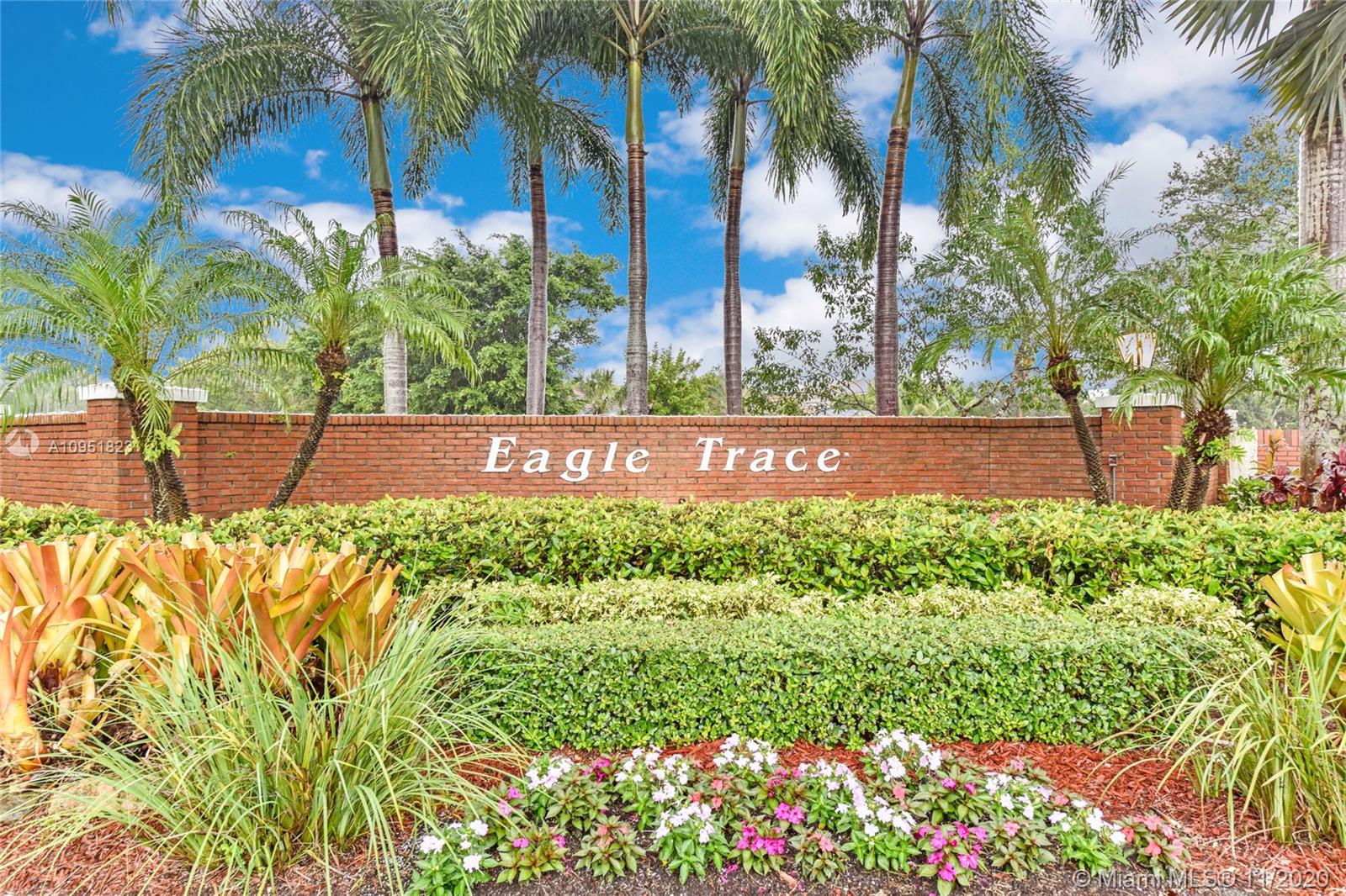 The house of your dreams just hit the market! Stunning 5 bedroom, 4.5 bathroom home in the highly desirable gated community of Eagle Trace! This property offers magnificent features that will have you in love at first sight! Inside you have a grand foyer entrance, a beautiful living area with coral stone fireplace, fully equipped wet bar, amazing kitchen with stainless steel appliances alongside skylight dining, formal dining, family room, spacious bedrooms, and amazing grand master suite with two walk-in closets and a master bath with a spa tub, standing shower, and many more features you just have to see to believe! Outside you have a resort-style backyard with multiple seating areas, bluetooth speakers, heated saltwater pool, oversized jacuzzi, and lush landscaping!