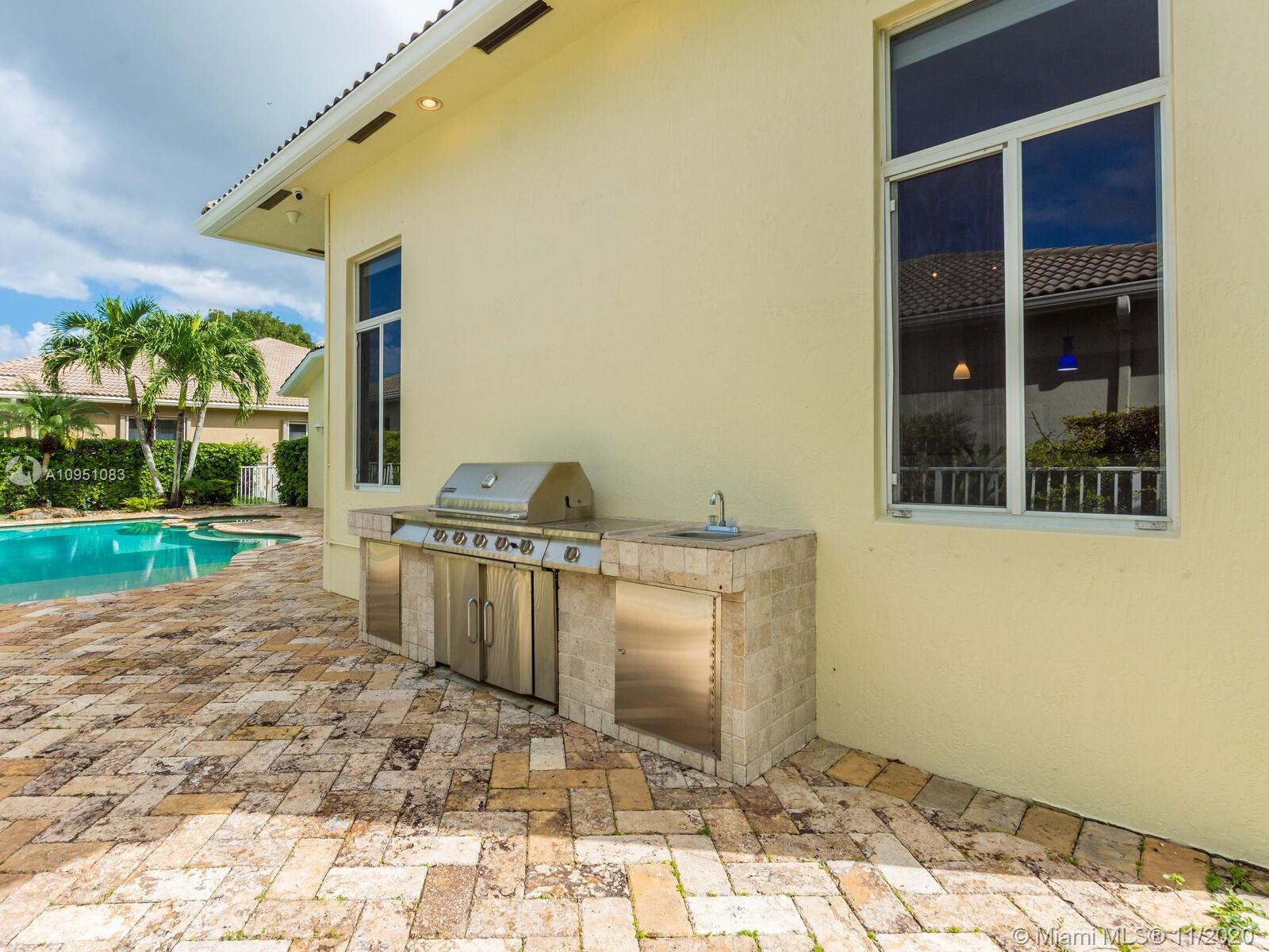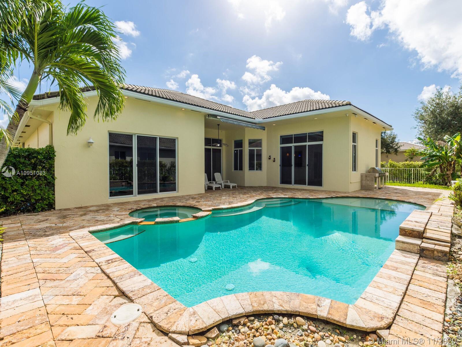 This beautiful La Jolla model home is situated in the coveted Beverly Hills side of the Laguna Isles community. It sits on an oversized corner lot. The home features a spacious open floor plan & is built around a covered lanai and free form pool in its fully fenced yard. The built-in outdoor BBQ area is great for entertaining. The garage features a split AC unit, mirrored walls perfect for exercising, and is electric car ready. An added bonus are the motorized blackouts in both the master room and family room. HOA includes landscaping, basic cable, guarded gate, clubhouse, gym, tennis courts, pool, jacuzzi, & playground.