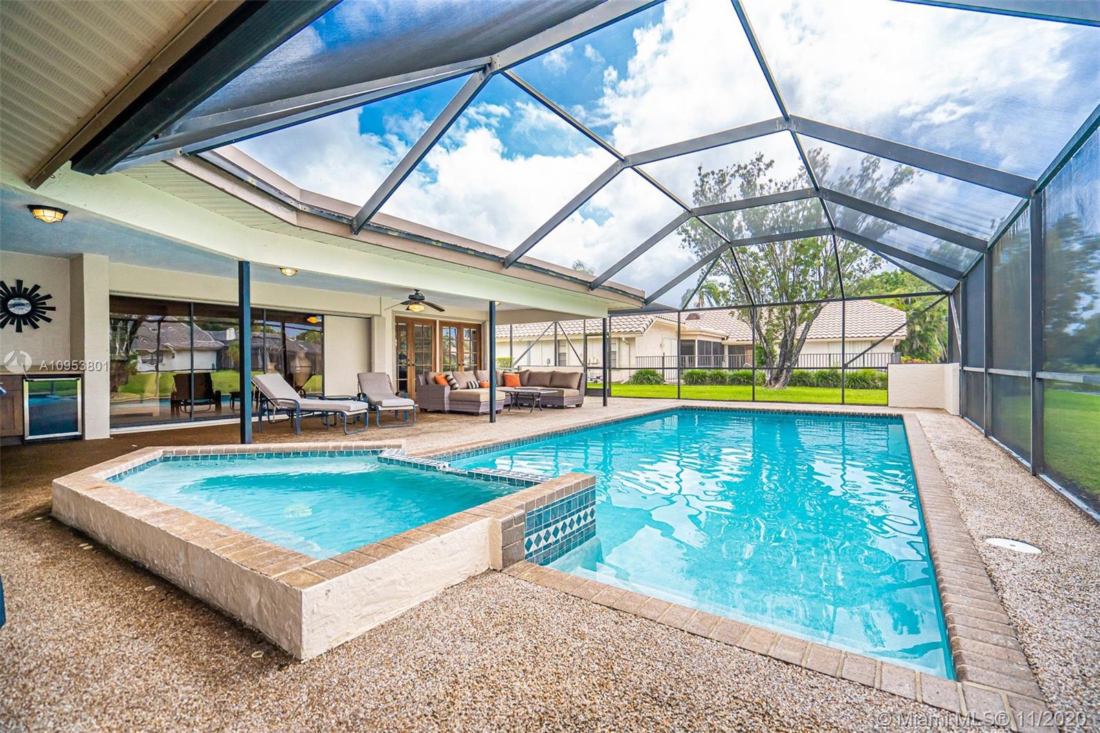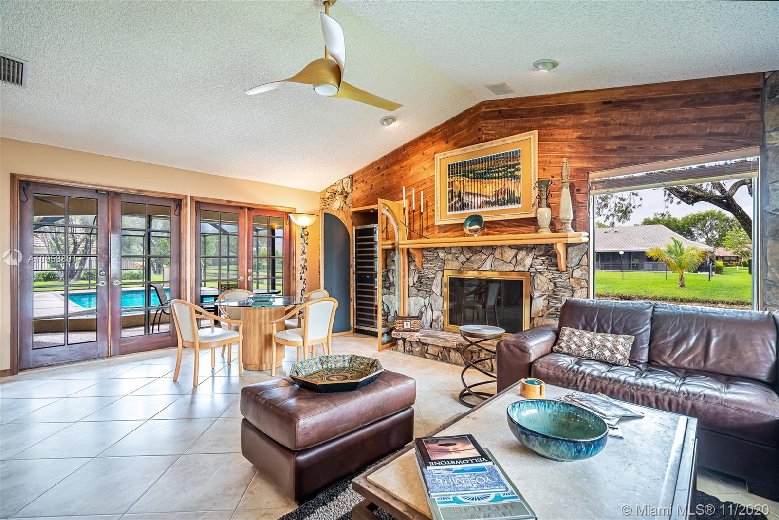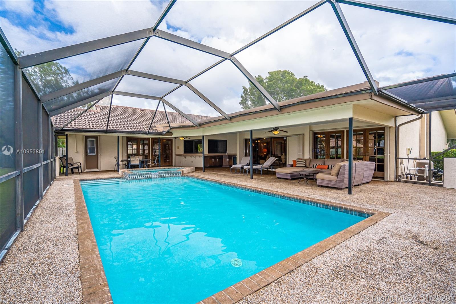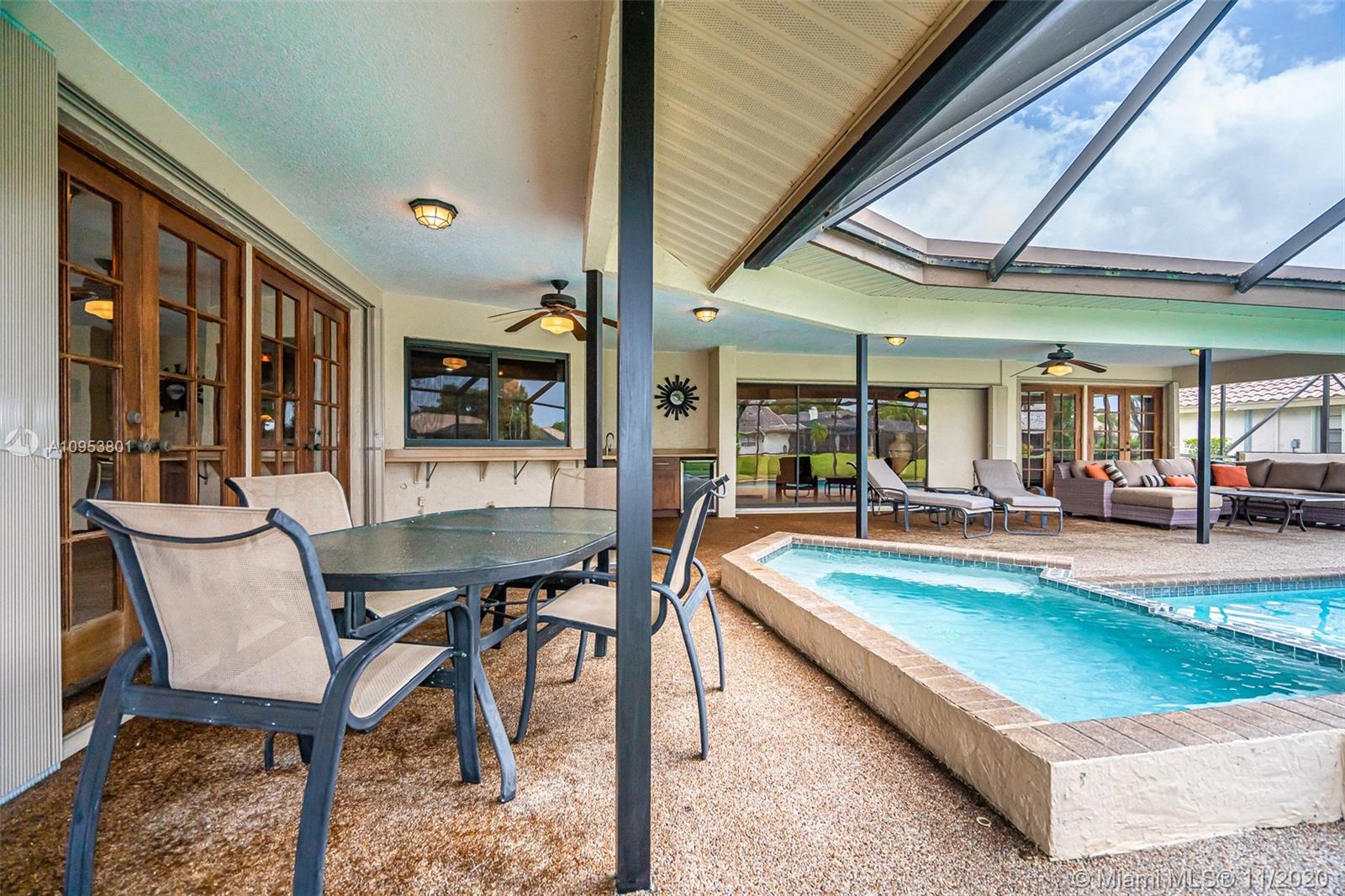 True pride of ownership prevails in this spacious well cared for custom transitional home on a beautifully landscaped oversized waterfront homesite in the most desirable Cypress Isle community. This home is complete with a circular driveway, soaring ceilings, impact glass, accordion shutters, solid wood doors throughout, gourmet kitchen, numerous closets, split bedroom floor plan, built-in wall units, large interior laundry room with built-in ironing board, wet bar with wine cooler, fireplace, french doors, 2 zone air conditioning, central vac, grand master suite, 2 hurricane rated skylights for great natural light, large pool & covered patio great for entertaining, summer kitchen area, full cabana bath, Charging station & more. Enjoy this most tranquil setting with NO HOA