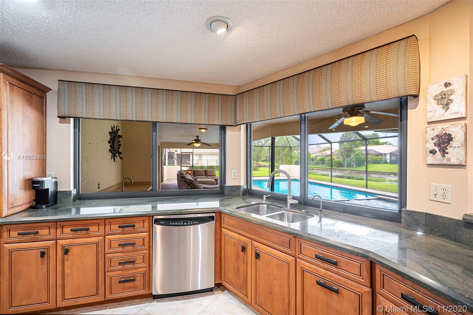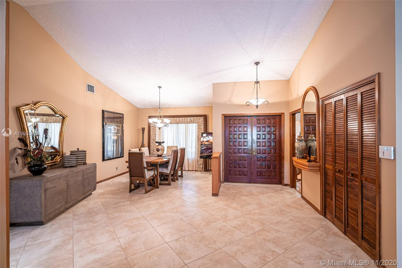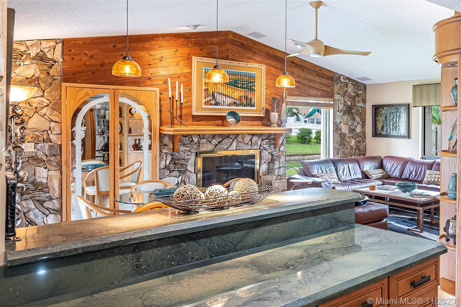 True pride of ownership prevails in this spacious well cared for custom transitional home on a beautifully landscaped oversized waterfront homesite in the most desirable Cypress Isle community. This home is complete with a circular driveway, soaring ceilings, impact glass, accordion shutters, solid wood doors throughout, gourmet kitchen, numerous closets, split bedroom floor plan, built-in wall units, large interior laundry room with built-in ironing board, wet bar with wine cooler, fireplace, french doors, 2 zone air conditioning, central vac, grand master suite, 2 hurricane rated skylights for great natural light, large pool & covered patio great for entertaining, summer kitchen area, full cabana bath, Charging station & more. Enjoy this most tranquil setting with NO HOA