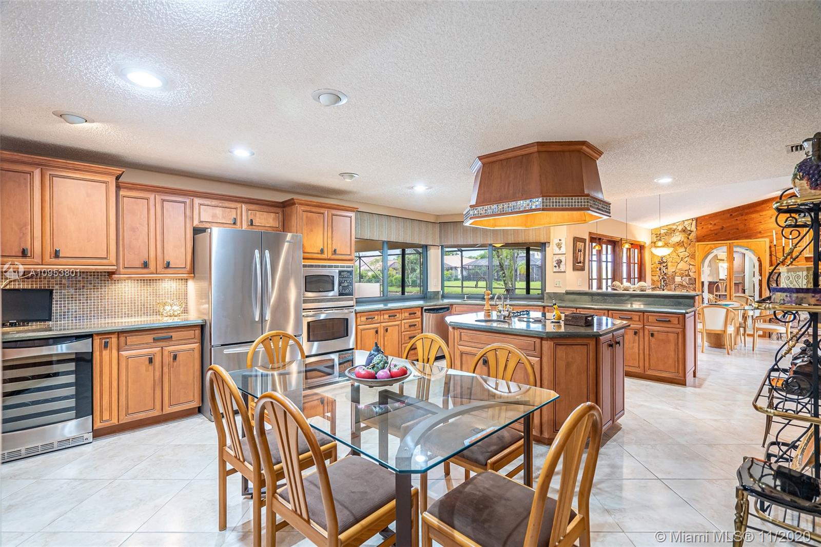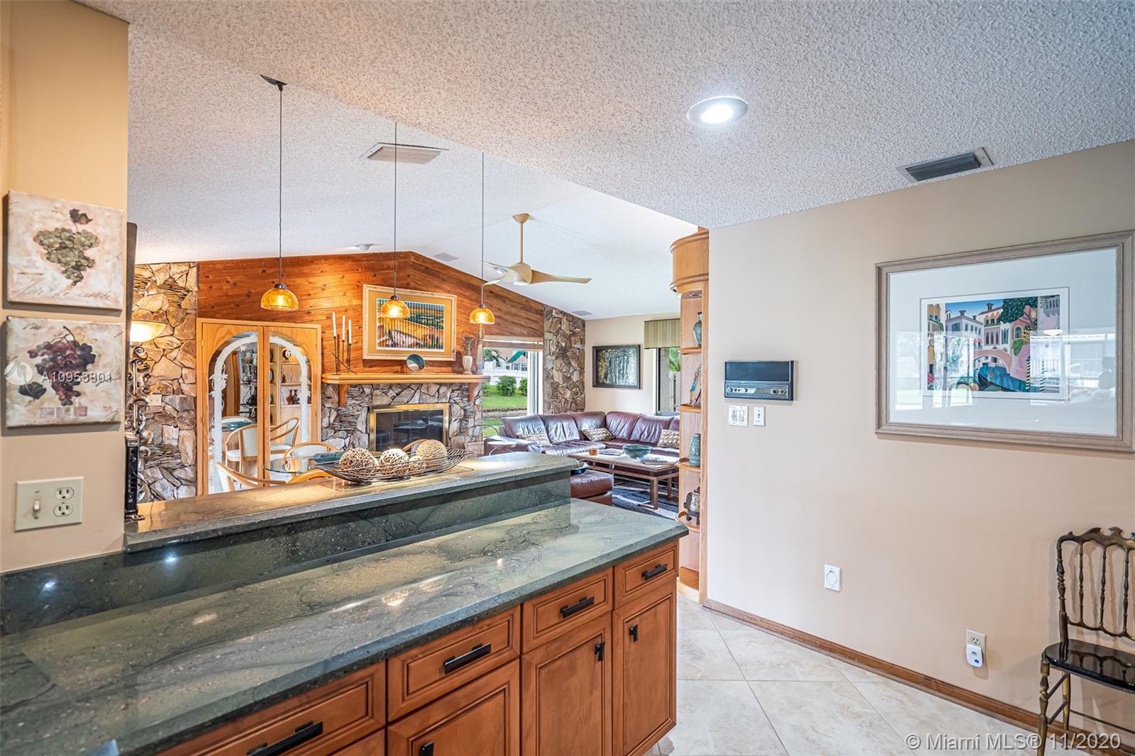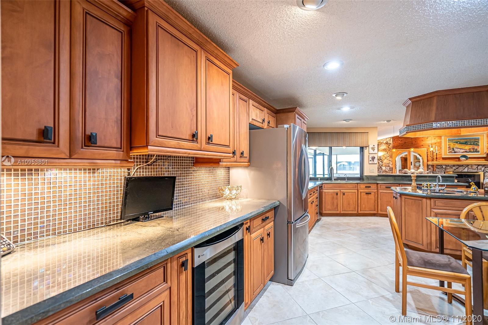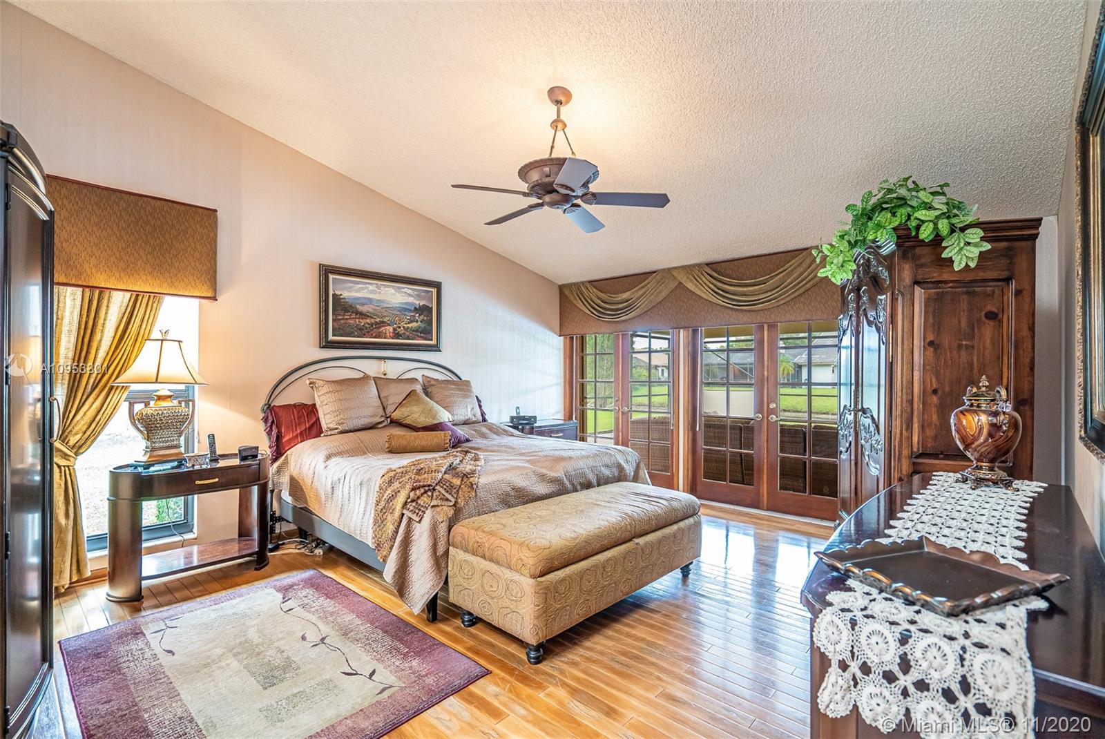 True pride of ownership prevails in this spacious well cared for custom transitional home on a beautifully landscaped oversized waterfront homesite in the most desirable Cypress Isle community. This home is complete with a circular driveway, soaring ceilings, impact glass, accordion shutters, solid wood doors throughout, gourmet kitchen, numerous closets, split bedroom floor plan, built-in wall units, large interior laundry room with built-in ironing board, wet bar with wine cooler, fireplace, french doors, 2 zone air conditioning, central vac, grand master suite, 2 hurricane rated skylights for great natural light, large pool & covered patio great for entertaining, summer kitchen area, full cabana bath, Charging station & more. Enjoy this most tranquil setting with NO HOA