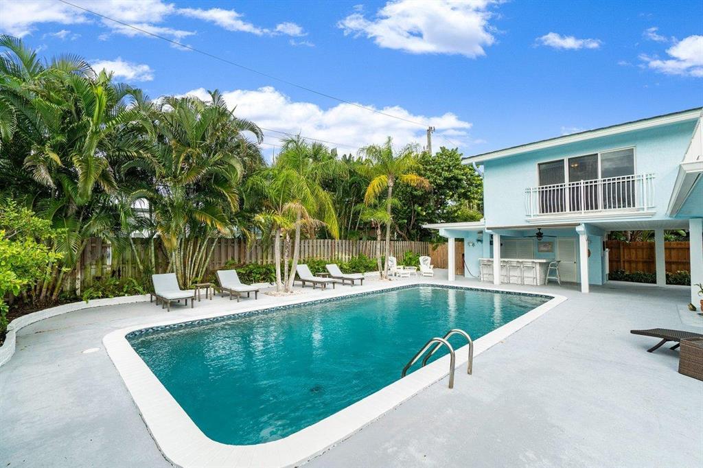 Located East of A1A and a short walk to the private beach access of Hillsboro Shores, this Beach house features a fabulous wide open floorplan, Vaulted ceilings, a Great Kitchen and a huge family room and entertaining area. The Master Suite is the entire 2nd floor and includes a great rooftop patio. This is true ''Beach'' living with a huge entertaining/ pool area with an outdoor summer kitchen, bathroom and shower.