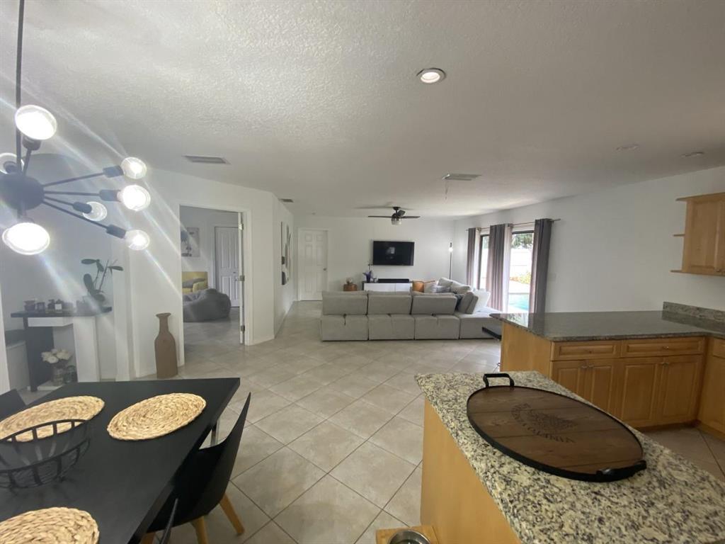 BRAND NEW ROOF will be installed, 40 yr dimensional shingles, waiting on the permits,4 bedrooms for large family or use the 4th for an office,All tile set on a diagonal with a perfect open floor plan and split bedrooms. Laminate in all the bedrooms, Newer Hunter fans, crown moldings, knockdown ceilings throughout. Fully fenced yard, sprinkler system, travertine pool deck with a built in fire pit and luscious landscaping for privacy.Large Shed, Full set of hurricane shutters.