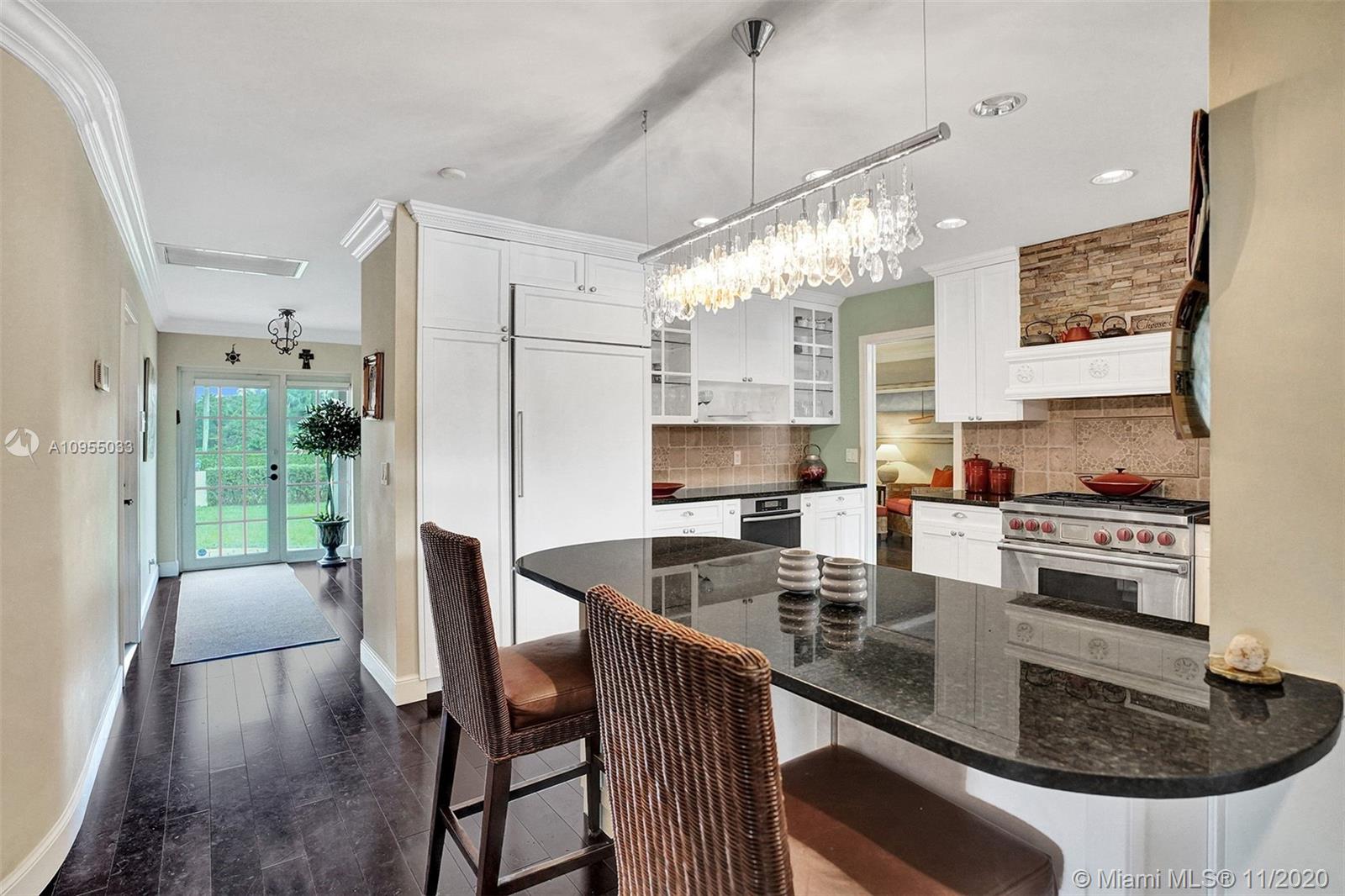 This move-in ready oasis is a professionally-designed & fully remodeled with a split floor plan. This three bed, two bath sanctuary sits on a builder's acre with a beautiful pool looking out over a relaxing pond, surrounded by mature fruit trees and a gorgeous shady oak. Rich hardwood flooring throughout the master suite and living areas with crown molding in every room gives this charming home a warm feel. Granite countertops in the kitchen surround a built-in Miele steamer oven, Miele dishwasher, Sub Zero fridge/freezer, and top-of-the-line 6-burner gas Wolf stove/oven perfectly lit by a custom James R. Moder chandelier. All kitchen cabinetry was custom-built and designed for the space with soft-close drawers and storage. The pool deck was remodeled 3 years ago. NO HOA!! EASY TO SHOW!