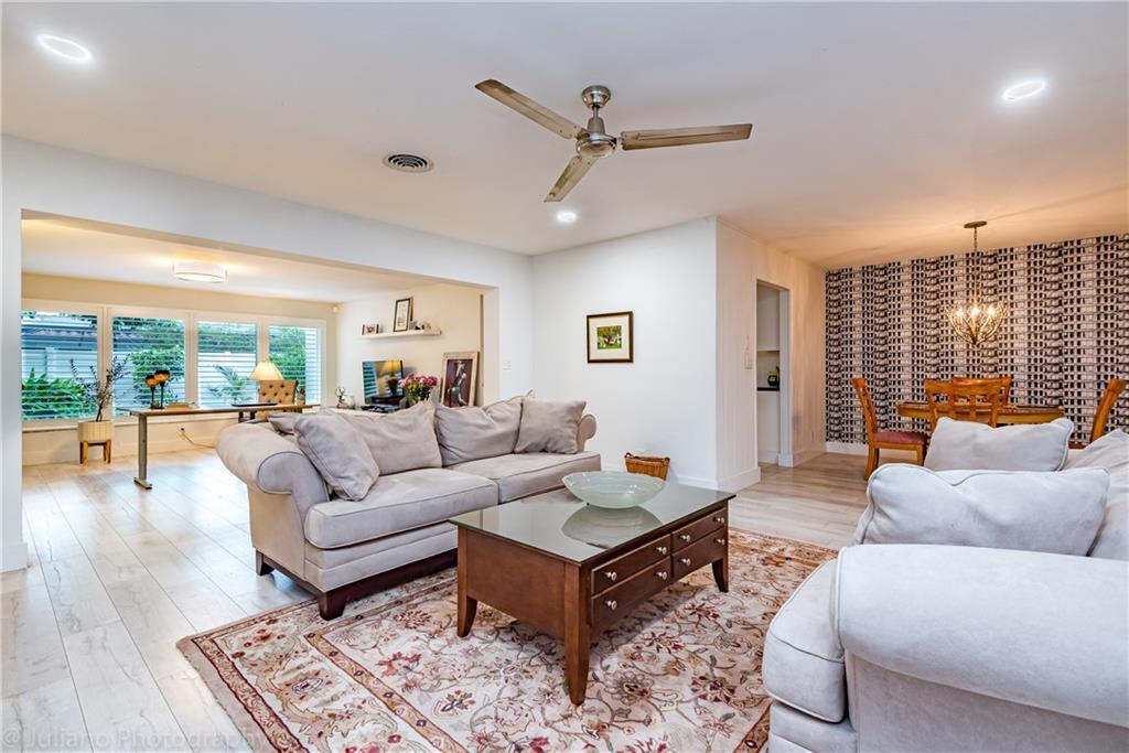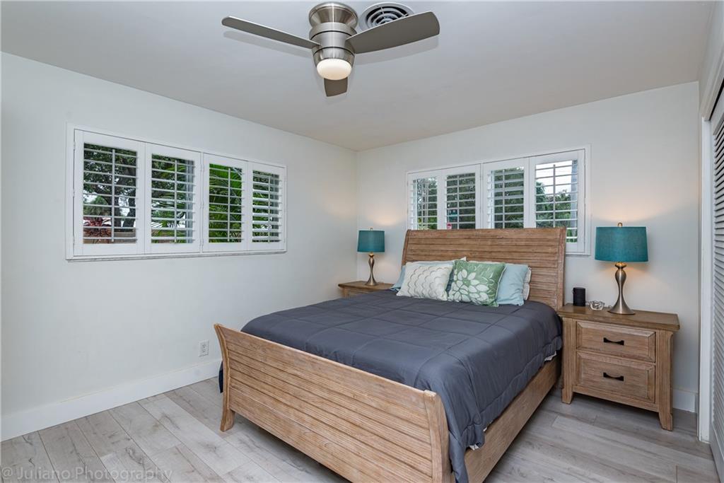 Modern, bright and spacious home in sought after Imperial Point. Wide plank flooring throughout, large office off living room, plantation shutters, and impact windows and doors. Bathrooms and kitchen beautifully updated. Master Bedroom with Walk in Closet. Enjoy the huge screened in Lanai overlooking the garden. Laundry room under air + storage room off carport. This 2BR/2.5 BA home (can easily be 3BR) sits on an oversized corner lot. Just 2.5 miles from the beach, near restaurants, shops, hospitals and more.