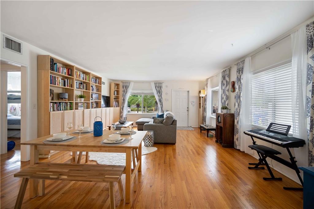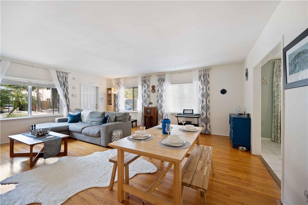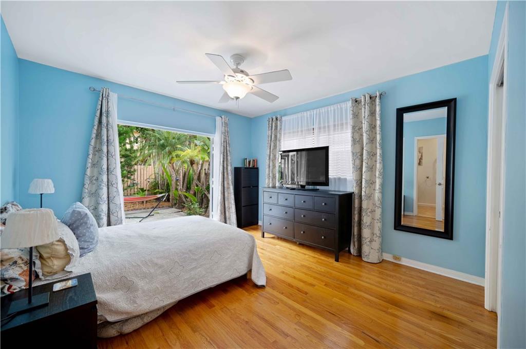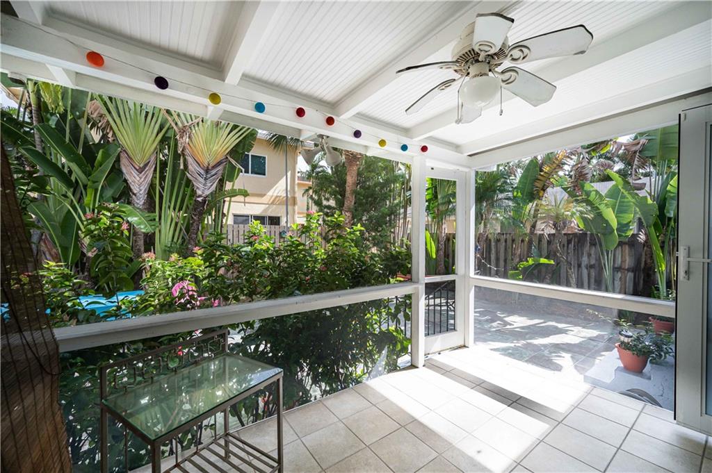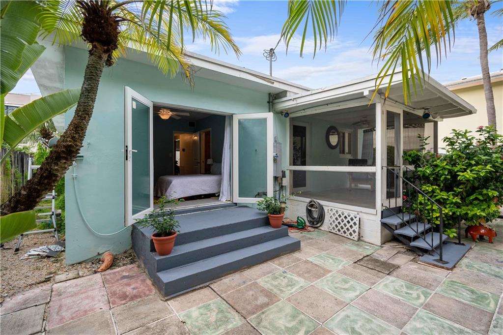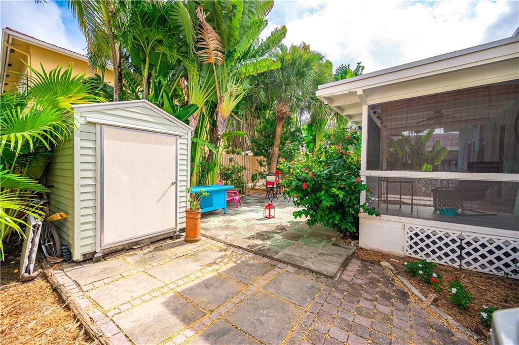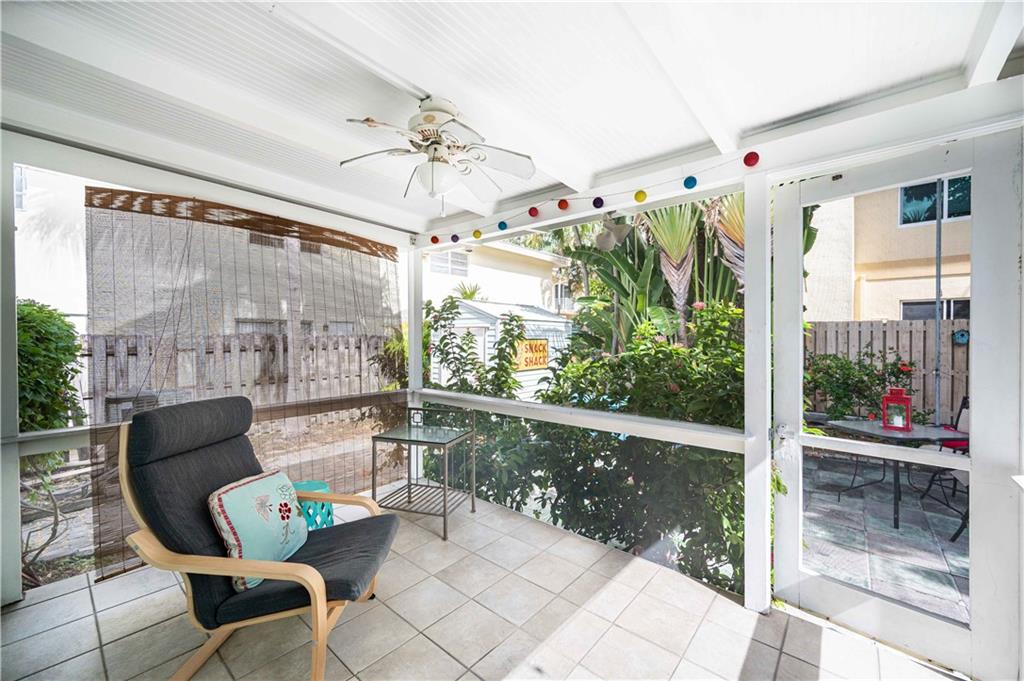Classic Victoria Park design lovingly updated and situated in a secret garden. This 2BR/2BA offers a spacious living/dining room, eat-in kitchen, a primary suite with sliding doors to a patio plus a screened porch overlooking the fenced private yard and terrace. Recent improvements include; impact windows/doors, composite roll roof, HVAC system, renovated Primary bath plus an energy efficient solar hot water heater. Additional features include; natural gas cooking, hardwood floors, a gated, fenced yard, an additional gated parking area, a garden shed and a large sun terrace surrounded by gardens. Zoned multi-family this property affords several possibilities.