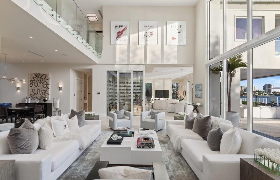Stunning modern/transitional estate in Sunrise Intracoastal! Designed by Affiniti Architects & built by renowned Sarkela Corp, this custom home is a must see! Grand entrance w/ floor to ceiling windows to showcase the River views. Light & bright floor plan, perfect for entertaining. Features include game room, VIP guest suite, electric shades, formal living & dining rooms, elevator, fireplace & temp. controlled wine cellar. Chef's kitchen w/ double island & high end appliances. Oversized Master bedroom w/ his & hers baths w/ water views. Crestron Smart Home system & full house generator. Enjoy the outdoors all year long w/ salt water pool, oversized jacuzzi, summer kitchen & AC outdoor living space w/motorized solar screens. Walking distance to shopping, Publix, restaurants & the beach.