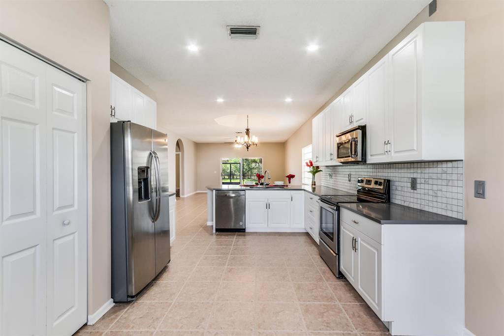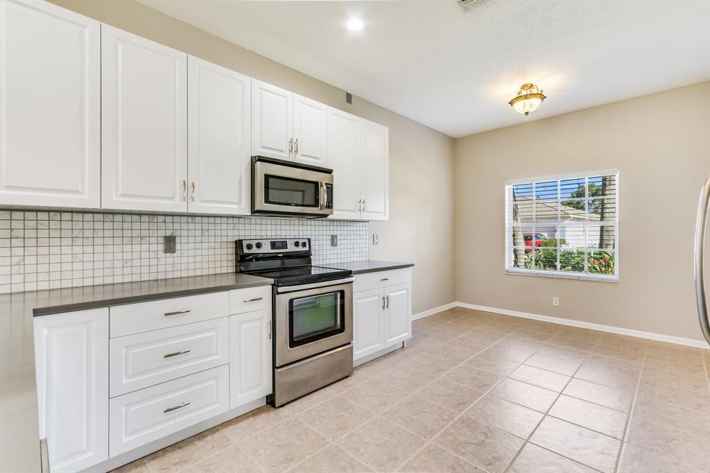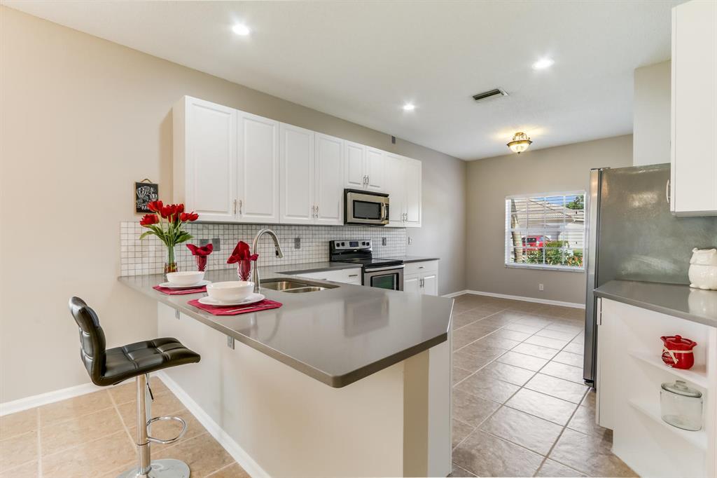 3br/2ba solid CBS home in the 24 hr manned gated community of Andros Isles. 2018 new kitchen with all new cabinetry, stainless steel appliances, quartz counter-tops. Spacious open floor-plan with tile flooring thru-out living area and wood flooring in the bedrooms. Master bedroom has a remodeled and updated bathroom, designer sinks, large glassed shower, Roman tub and walk-in closet. Huge expanded patio with screen enclosure for entertainment & outdoor enjoyment! Oversized lot feels enormous w added privacy of the vacant common green area adjoining! 2 car garage and inside laundry room. Lawn care included in the low HOA fee! Pet friendly neighborhood! Community amenities include clubhouse, resort style pool w/hot tub, game room, fitness center, tennis courts, playground, & biking path!