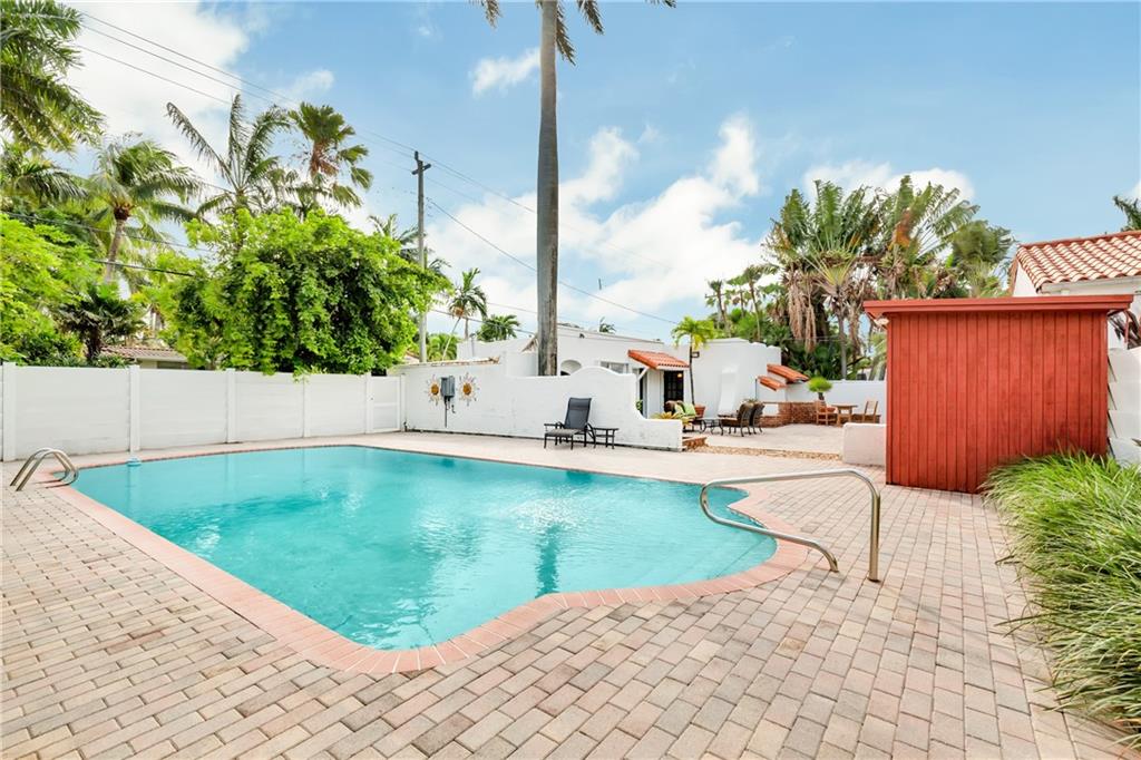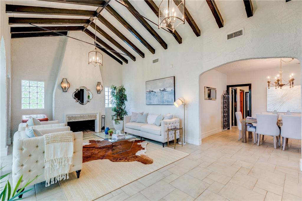 Welcome to this historical 1926 style home. Greeted by Cathedral ceilings with wood beams and original wood burning fireplace, you will fully encompass the historical charm in this beautiful home. Arched hall entrances bring you to the dining room and kitchen. Main house sits as a 2 Bedroom and 1.5 Bath (can be converted to full 2 Bath). Master has large walk-in closet and tons of natural light. Detached cottage has 1 Bedroom and 1 Bath with living space while other guest space has separate Bedroom and Bath with full kitchen. Main home and Cottage is separated between by your private pool and courtyard oasis. Home sits on a large Double Lot. Full accordion shutters throughout home. Gas generator to power home in stormy nights. Come check out this Historical Charm today!