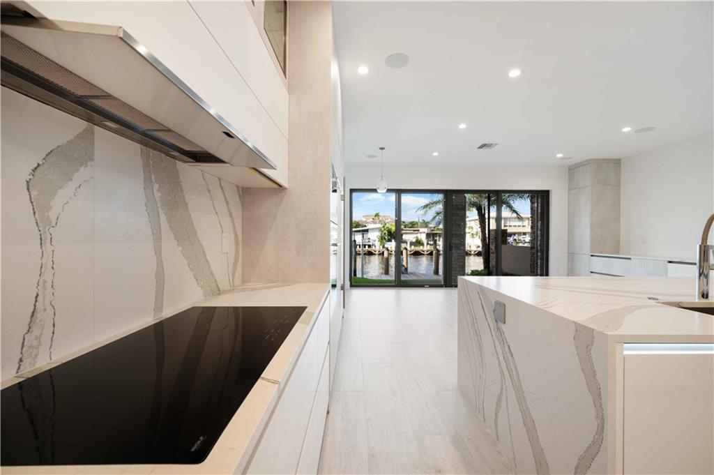 Easy to take care of yet independent NEW Construction waterfront 2-level townhome with private dock for 42' craft, elevator and 2-bay garage with glass door. Corner home with bright sun-lit interiors with high ceilings and walls of sliding doors and windows on three sides. Modern interior has two living areas, porcelain floors, custom cabinets and a wall length buffet, wet bar and media center. The kitchen features seating at both a breakfast bar and the center island. Also Wolf, Bosch and Sub Zero appliances. The second floor landing has a morning bar with sink and fridge. Each bedroom has a bath and generous closet. The Primary bedroom has private balcony and luxury spa bath. Smart home ready with speaker system. Pool ready with pilings already in place. UNDER CONTRACT BUT WE HAVE OTHERS