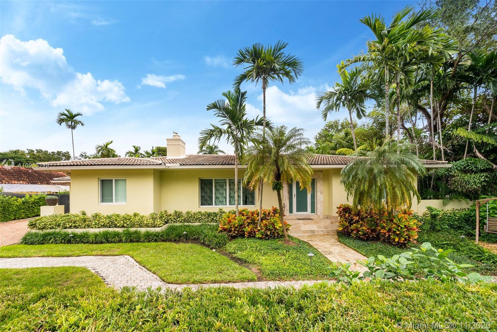 Look no further! Discover this exquisite mid-century home located in an oak canopied street in one of the most fabulous areas of the gables, within steps of the Biltmore Hotel and golf course. Entirely renovated, this 3 bedroom 3 1/2 bathroom home features a great floor plan with marble and wood floors throughout, impact windows and doors, sleek designer kitchen with a gorgeous view of the 20 X 40 foot heated pool and lush outdoor area. This home provides the perfect setting including 2 en-suite masters, one of them being around 600 sqft. Other features include a Kohler steam spa by the pool area, 2 car garage, gated walls and lots of natural light. Within a stroll to The Venetian Pool, Salvatore Park, Church of the Little Flower and more. Truly a gem! See 3D virtual tour.
