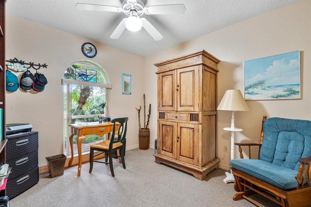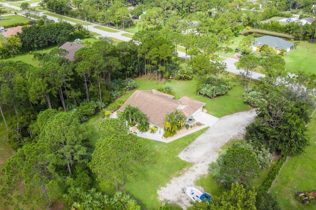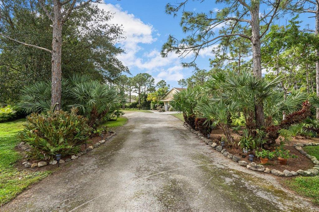 WELCOME HOME to serenity and country living at its best! This charming (3) bedroom, (2) full bath, oversized (2) car garage home features; a premium and private fully fenced 1.19 acre lot with no pond and hello peace of mind and insurance savings from the newer 2014 roof and hurricane shutters! ENTERING the beautiful 12' x 7' brick paved covered front patio brings you to the etched glass front door and into; an open floorplan design, 13 foot knockdown ceilings and spacious kitchen boasting; newer granite countertops, marble backsplash, 2020 stainless steel appliance package, convenient bar, pantry and pass through kitchen window that opens to the lovely covered lanai. Passing through you will discover that this gem is very well maintained and white glove clean, tray ceiling, (CLICK)