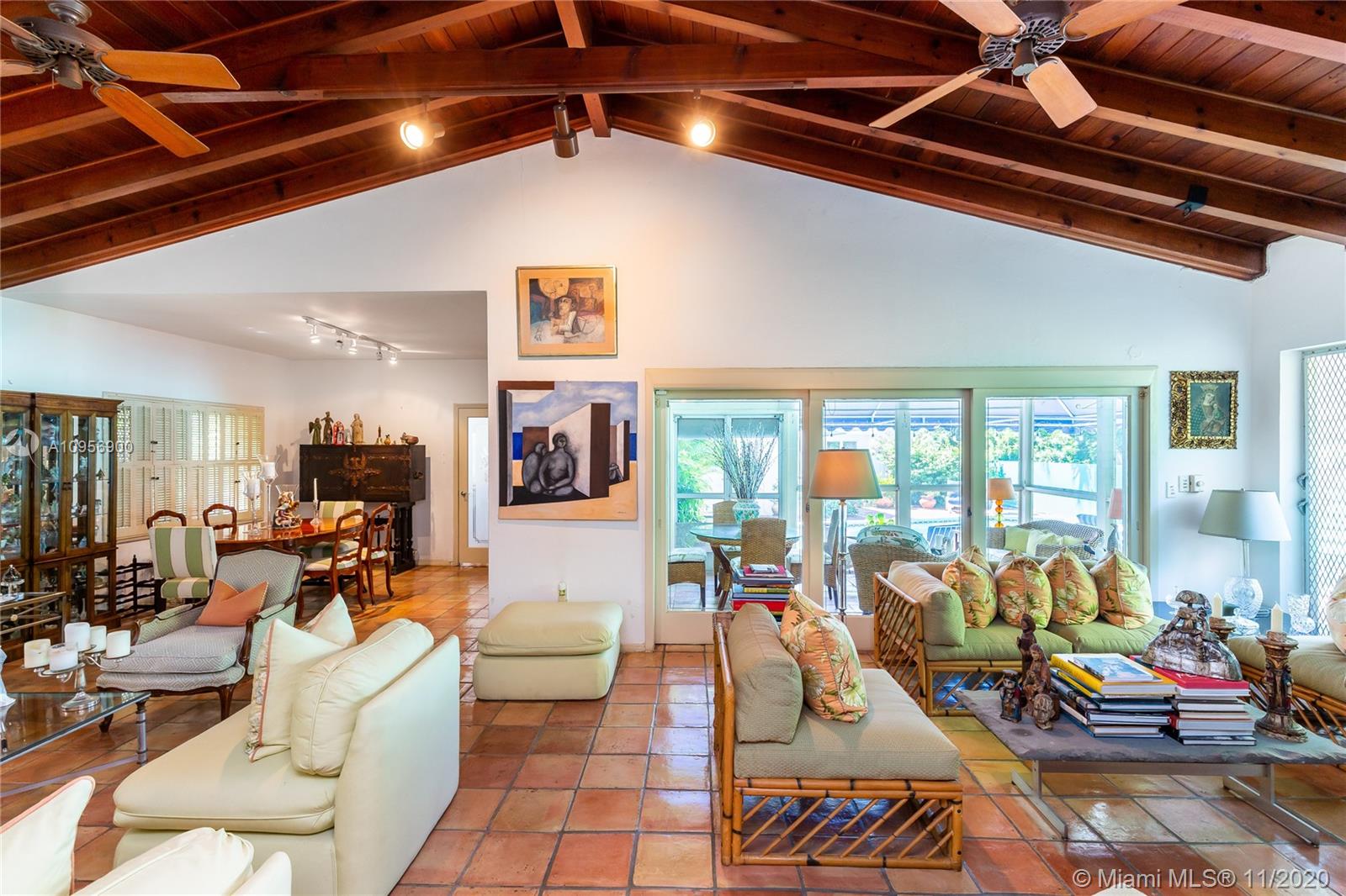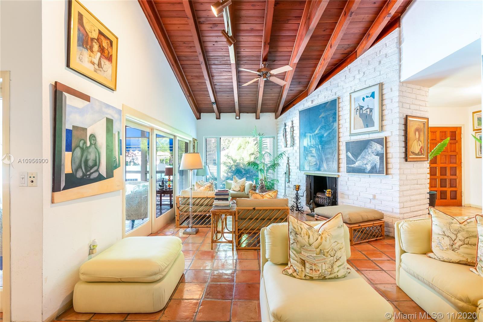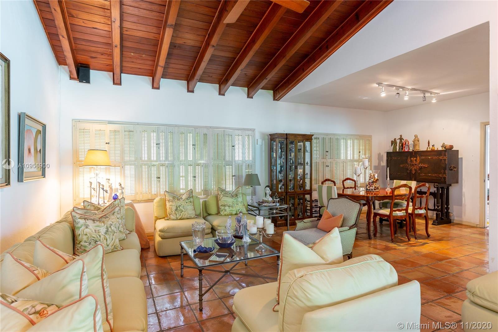 Live & lavishly entertain in this beautifully landscaped & designed compound in Coral Gables half a block from Merrie Christmas Park. Situated on an ample 15,000 sf lot. Property consists of a main home with 3 beds/2 baths, renovated kitchen, large great room & living room with vaulted ceilings, fireplace, dining area & an enclosed patio facing the pool area. Features a spacious 2 car garage connected with adjoining guest/staff quarters which has a bedroom and full bath plus living room which can also be another bedroom. The two structures surround pool with covered areas for dining and enclosed by a wall ensuring privacy. Has Mexican tiles with hardwood floors in the bedrooms. Great opportunity to update and expand. Roof at end of life & windows original. Hurricane shutters. As Is.