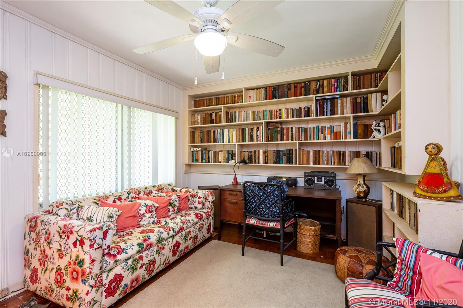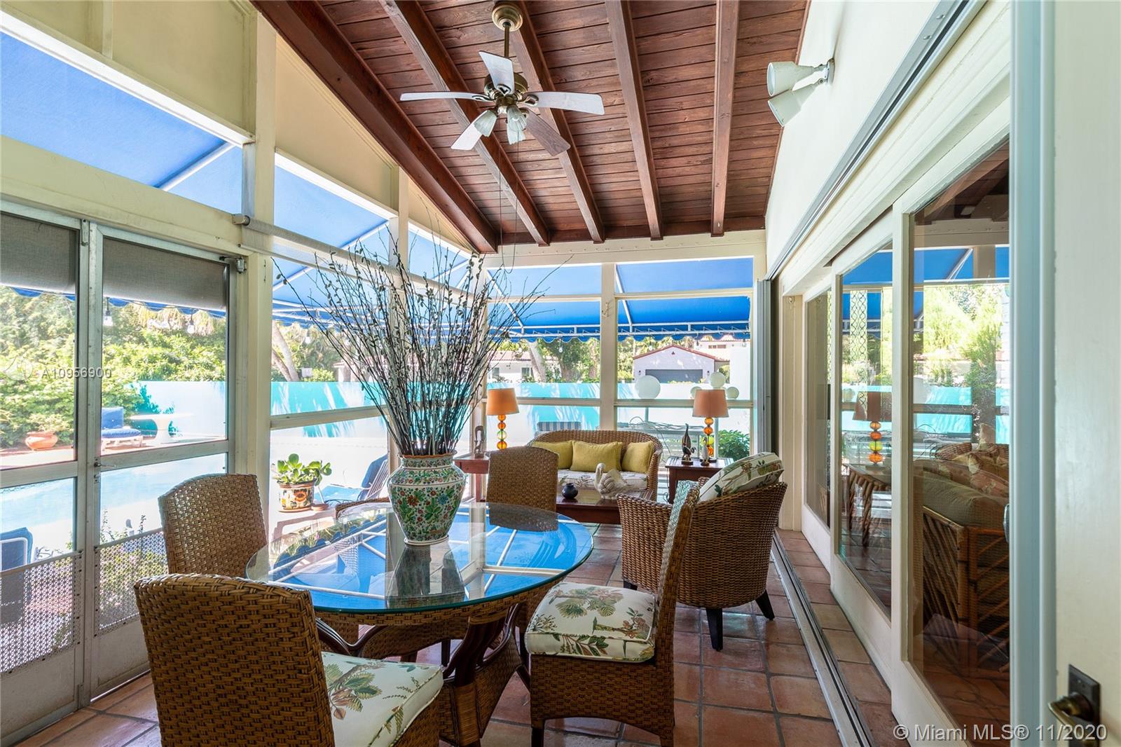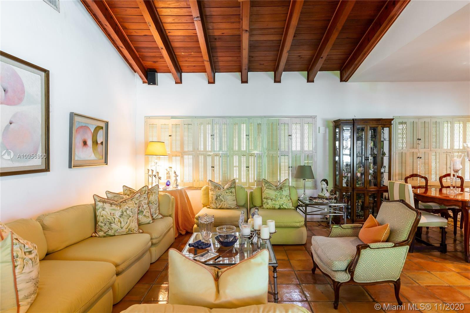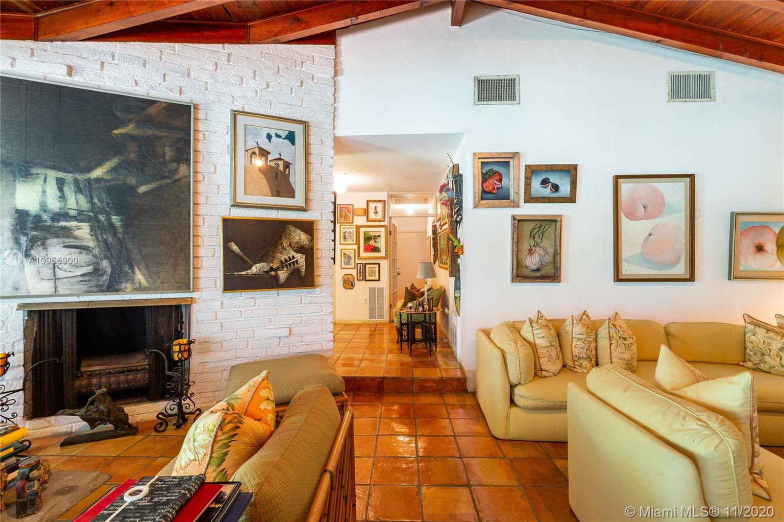 Live & lavishly entertain in this beautifully landscaped & designed compound in Coral Gables half a block from Merrie Christmas Park. Situated on an ample 15,000 sf lot. Property consists of a main home with 3 beds/2 baths, renovated kitchen, large great room & living room with vaulted ceilings, fireplace, dining area & an enclosed patio facing the pool area. Features a spacious 2 car garage connected with adjoining guest/staff quarters which has a bedroom and full bath plus living room which can also be another bedroom. The two structures surround pool with covered areas for dining and enclosed by a wall ensuring privacy. Has Mexican tiles with hardwood floors in the bedrooms. Great opportunity to update and expand. Roof at end of life & windows original. Hurricane shutters. As Is.