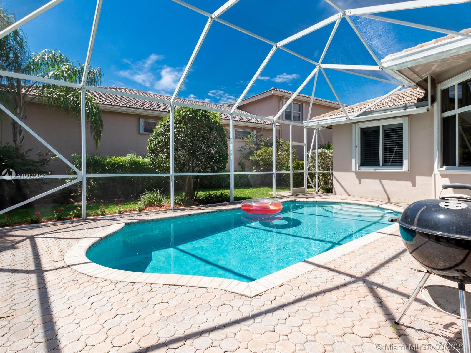 Beautiful screened-in pool home with split floor plan in prestigious Mariners Cove. Double door entrance to enormous master wing, generous master bath with double vanity, shower and tub. Other features are accordion shutters for hurricane protection, Plantation window treatments in all bedrooms, 8’-9’ ceilings and oversize 2 car garage with storage capacity. Kitchen boasts Silas tone counter top, wood cabinetry, stainless steel appliances (including new E-Range), makes for a great culinary experience. Double doors take you to the second wing of this huge home, featuring 3 bedrooms freshly painted, with new floors and boasts it’s own den or homework room. Screened in patio help to create a South Florida tropical oasis. Gated, close to Sawgrass Expressway, dining and entertainment close by!