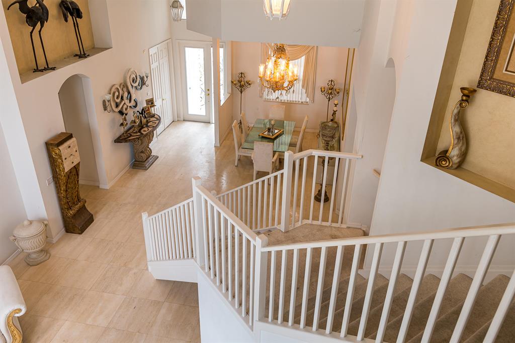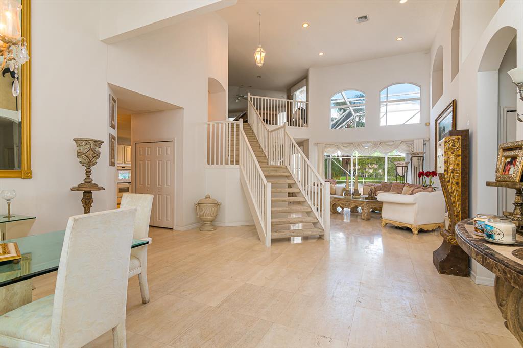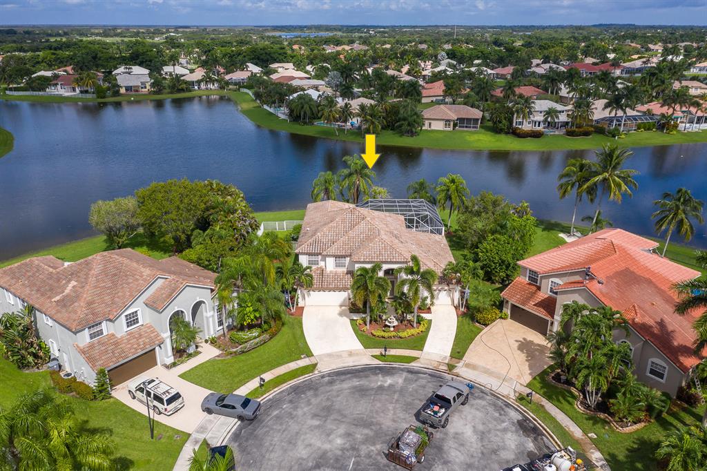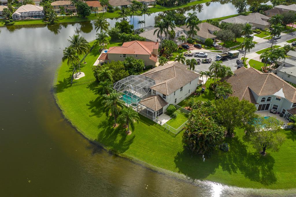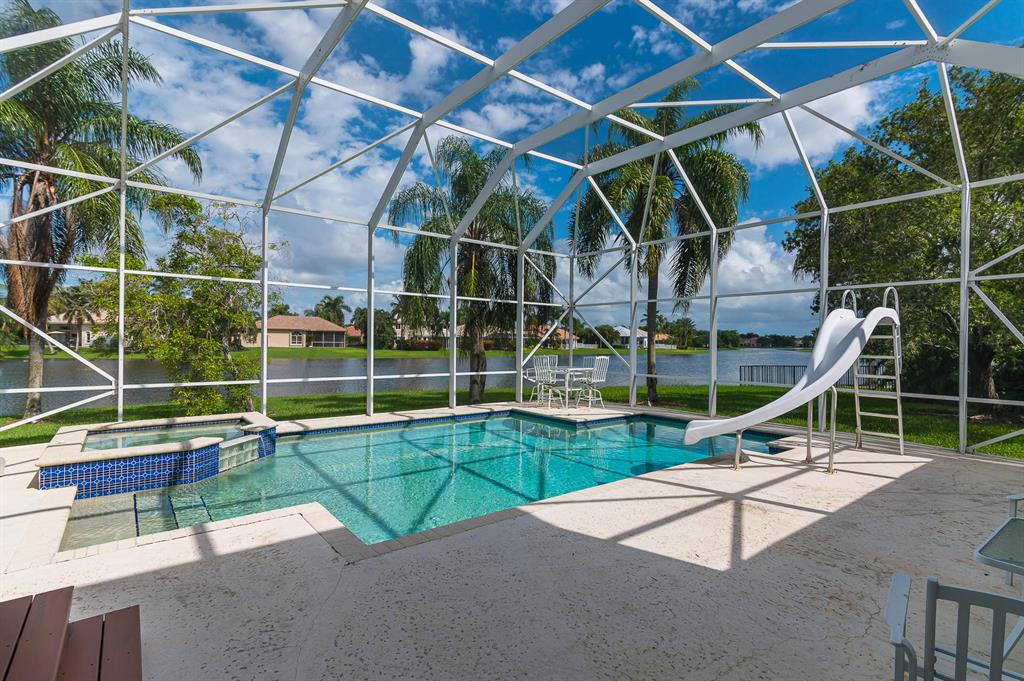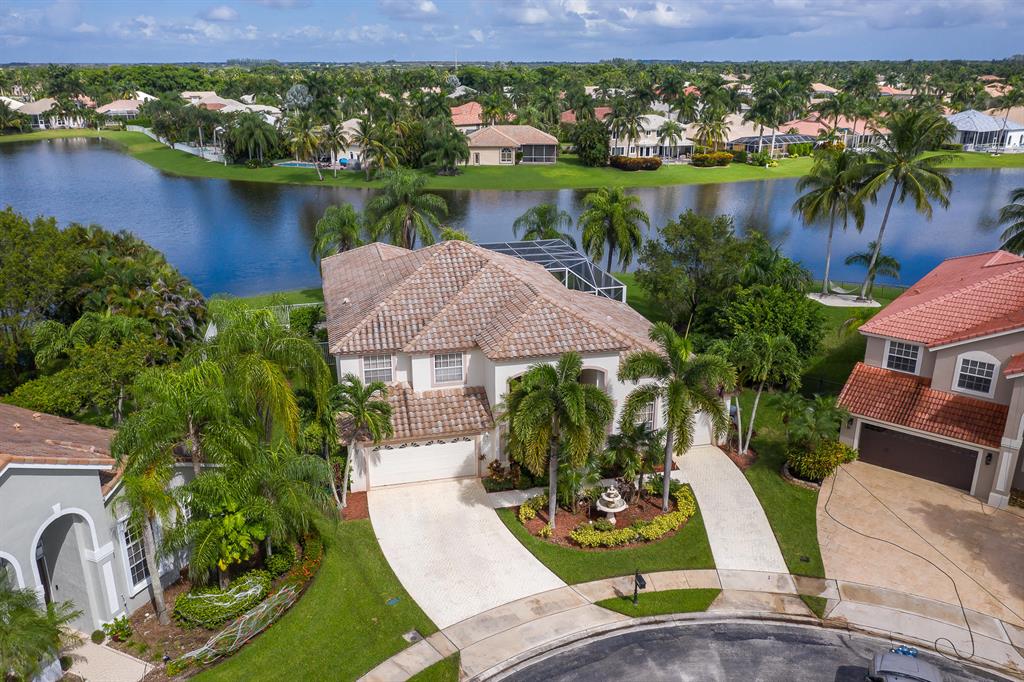 You will fall in love with this 5 bedroom, 3 1/2 bath beauty on the water. Best view in the entire community!!! Enjoy your morning coffee with spanning 180 degrees of the lake. You feel like you're on an island. Truly best lot in Boca Falls. The home is perfectly situated in a cul da sac & on one of the largest lots over 1/3 of an acre. This home has high end cream de fil marble throughout including all window sills. The master bath was totally redone with honey marble, gold plated faucets & more.Mater bedroom is on the 1st floor. Home also has a large den. Bonus in-wall speakers inside & outside. The attic has extra flooring built for extra storage & a built-in pull-down staircase. The pool & tub area are enclosed with extra tall screens. Location-Location. This is the crown jewel!