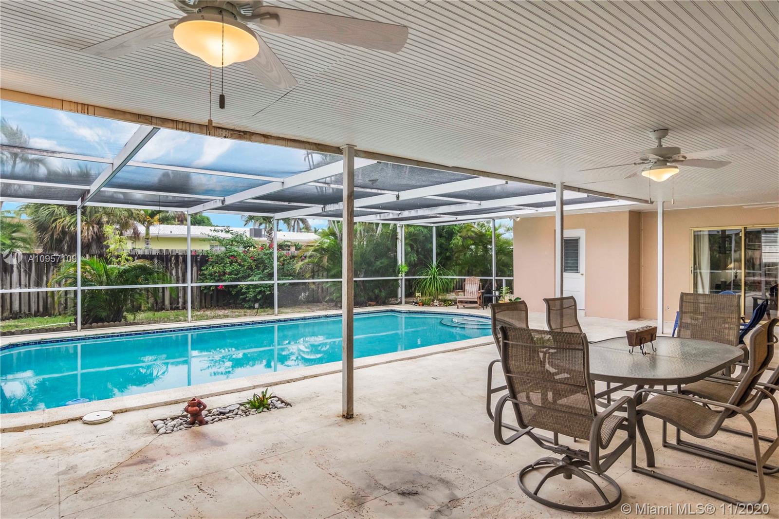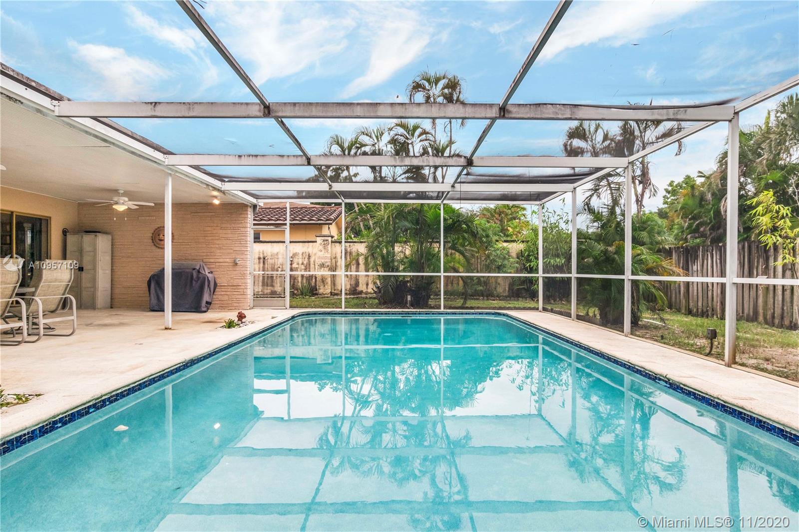 This CHARMING ranch style POOL HOME in Hollywood Hills is an ENTERTAINER'S DELIGHT awaiting your personal updates. Enter the foyer overlooking a large living room that flows into the formal dining room. The BRIGHT, eat in kitchen features plenty of storage and a WALL OF WINDOWS overlooking the pool patio. The family room adjacent to the kitchen is IDEAL FOR EXPANSION w/ views of the pool area from almost every room in the house. The enormous covered patio the essence of Florida Living. The main bathroom has been recently updated and the bedrooms are all large. The garage is also oversized with plenty of room for extra storage. House is immaculate, kitchen and house bath are charmingly original. Move right in and update over time, this home is a must see and won’t last long!