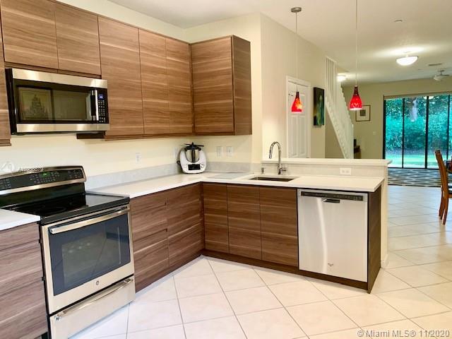 Beautiful Courtyard at the Grove! This is your opportunity to own a 3 bedrooms, 2.5 bathrooms and a 1-car garage townhouse located in a much sought after gated community. Completely remodeled modern high-end kitchen with stainless steel appliances and Caesarstone countertops, enough space for breakfast table by the laundry closet. Neutral color tile diagonally installed on the first floor and hallways and dark laminate wood in bedrooms. Master bathroom has an oversized tub/shower combo. Second Bathroom has a brand new vanity and light. AC only a few years old. According shutters in all windows for storm protection. Completely Private patio with no neighbors in the back. Walking distance to all the schools and Library. A must see!