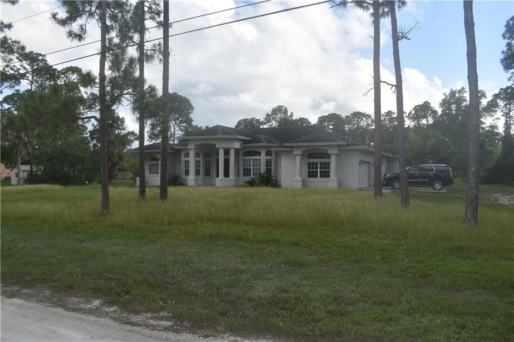 4 Bed, 3 Bath, 2 car garage, on 1.29 Acres. 3,052 sqft U/A, 12ft ceilings. Double door front entry, foyer & living room w/sliding glass doors provide grand view. Dining room w/tray ceiling & crown. Kitchen has solid-surface countertops, SS appliances, Gas range, breakfast bar & skylight. Family room w/French doors. Owner Suite w/tray ceiling, double walk-in closets, French doors to rear patio. Owner Bath w/private WC, dual vanities, jetted tub, & dual walk-in shower. Den/Office w/French door can be 5th Bed/Nursery. 2nd bedroom suite w/bath & bonus room for guest/in-law. Room for pool. Washer & Gas Dryer, Gas HWH, newer water system, well, (2) ACs 2012 & 2017. Garage door storm braced & storm panels for windows/doors. Security system w/cameras. No HOA, close to Turnpike, Publix. MAKE OFFER!
