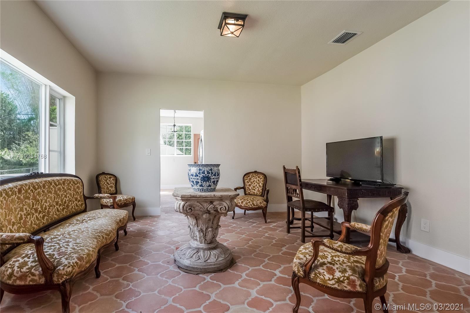 Old Spanish home + detached cottage located on a quite tree lined street in North Coral Gables. This George Merrick Classic was fully restored to it's original splendor. Renovations include new electrical, plumbing, hurricane impact windows, flooring ,kitchen and bathrooms. The main house features over 1,300 SF of living space inclusive of 2 bedrooms and 2 bathrooms, plus a spacious den (potential to be a 3rd bedroom) open living and dining with mosaic accented fire place, and Saltillo floors throughout. BONUS detached legal 323 sf features an open floor plan travertine floors through, full kitchen and spacious bathroom. Situated in one of the most convenient locations available of Coral Gables with close proximity to shops, restaurants, U of M, MIA airport, and major highways.