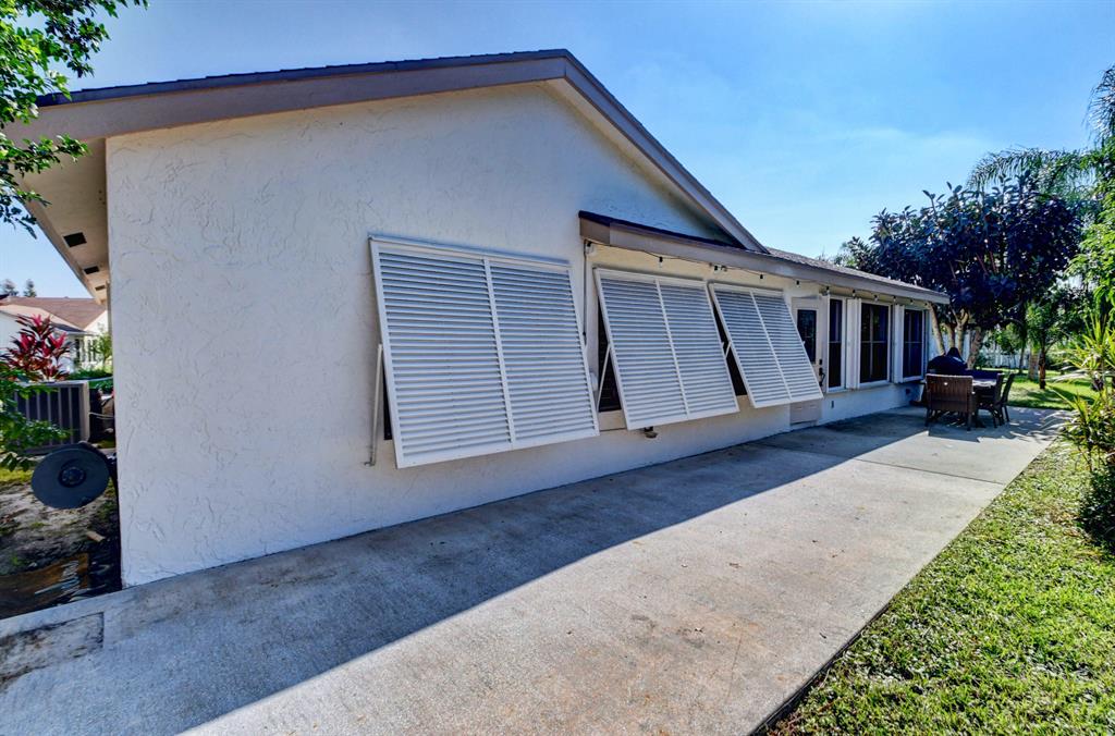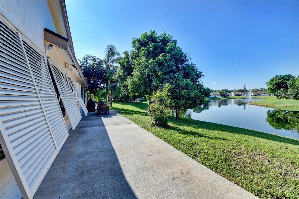 Nicely upgraded and meticulously maintained detached single family home with many upgrades and a gorgeous view of the lake in a great West Boca neighborhood. 3 bedrooms/2 baths, 24'' x 24'' earth tone porcelain tile throughout, professionally designed renovated kitchen with wood cabinets, top of the line stainless steel French door refrigerator and programmable convection & conventional Kenmore Elite chef oven with side oven broil & pan grid. Eat in area and office nook completes the kitchen. Tongue and grove cedar stained wood on all living area ceilings. Both bathrooms have been renovated, all closets have custom made shelving. Home is wired for surround sound in/out and most electronics. Exterior features concrete patio, raised bed for growing vegetables and a producing mango tree.