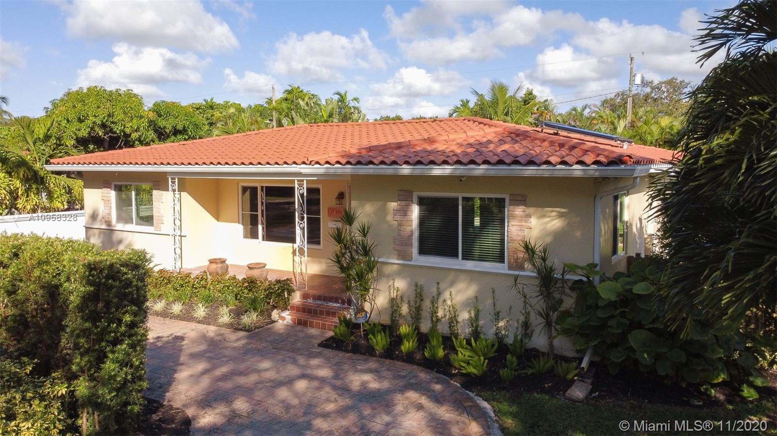 3 BEDROOMS AND 2 FULL BATHS IN MIAMI SHORES. TROPICAL PARADISE WITH COVERED OUTDOOR PATIO. 100% PRIVACY HEDGES SURROUNDING THE AMAZING HEATED POOL WITH FOUNTAINS, WATERFALLS, FASTLANE SWIM JET, SPA AND LIGHT SYSTEM. BEAUTIFUL ZERO MAINTENENCE ARTIFICIAL TURF ADJACENT TO POOL. GAS FIREPIT FOR CHILLY NIGHTS. ATTACHED GARAGE WITH PLENTY OF PARKING AND STORAGE. SEPARATE BACK GATED DRIVEWAY AND NEW FRONT CIRCULAR PAVER DRIVEWAY WITH ROOM FOR GUESTS. OPEN FLOOR PLAN, SPLIT BEDROOM PLAN, WOOD AND TILE FLOORS. HIGH TECH SOLAR A/C AND HOT WATER, ALARM SYSTEM AND LOREX SECURITY CAMERAS, IMPACT WINDOWS AND DOORS, NEWER ROOF.