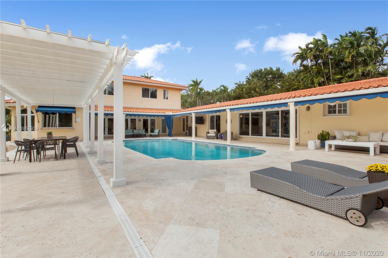 Beautiful Coral Gables estate on the prestigious Coral Gables waterway. Natural light floods this 5/5.5 home that is set up perfectly for indoor & outdoor entertaining. The oversized 22,800 sqft lot allows for the meticulously maintained gardens, 149ft of water frontage & expansive pool patio. The grandfathered coral rock cut out boat slip accommodates a 45ft, 13 beam boat. Formal living, dining room & kitchen look out to the pool & water. Separate family room with it's own additional summer kitchen, ideal for entertaining guests. Choice of two master bedroom suites, the lower level master boasts an elegant spa bathroom with pool views. The second master encompasses the whole upper floor, with a balcony looking over the canal. Desirable split bedrooms and a two car garage. Simply stunning.