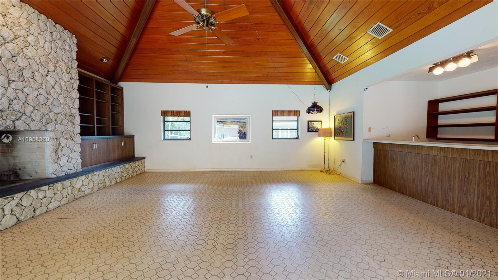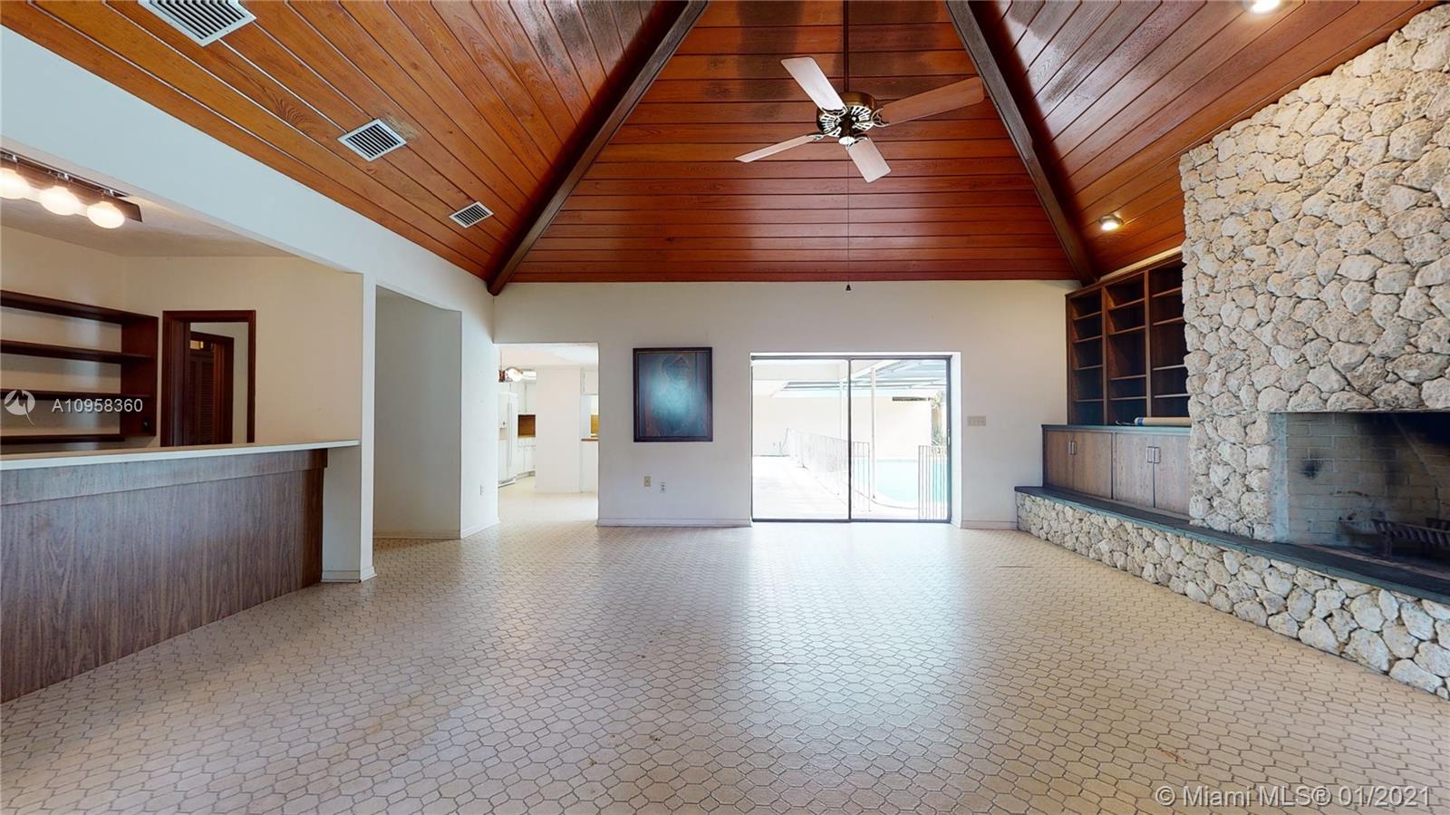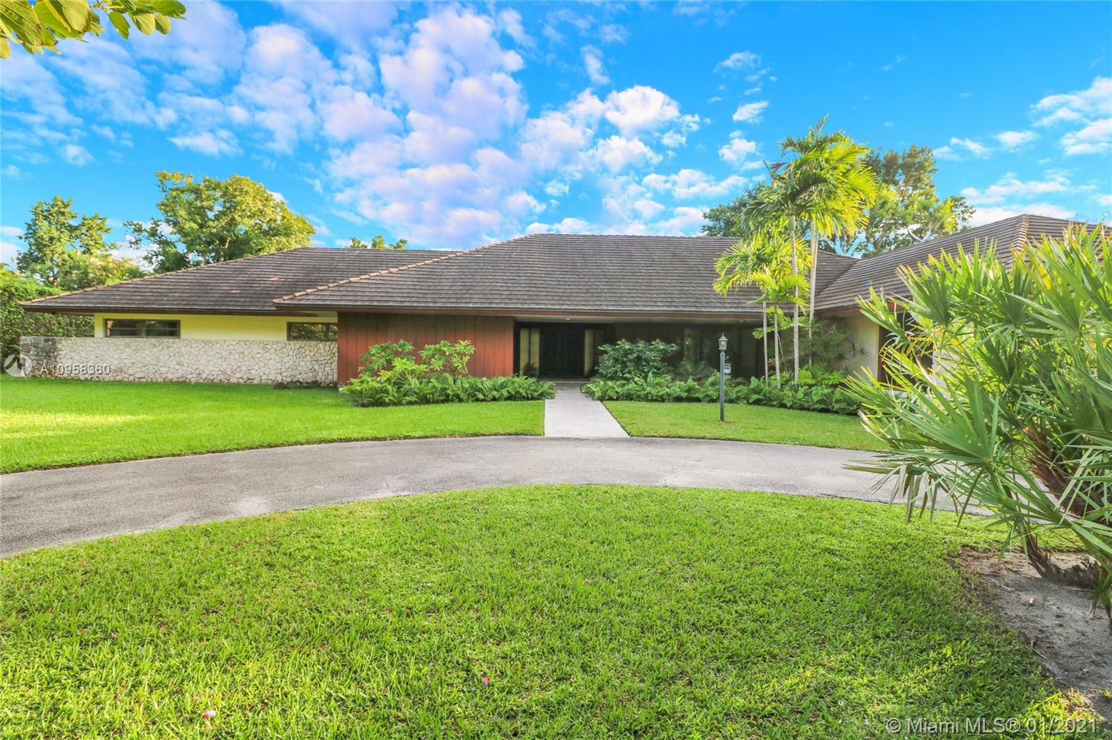 Unique opportunity to own your Coral Gables, Pinecrest-Palmetto school district dream home! This REMODEL-READY 5,283 sqft home w/5 generously-sized bedrooms, 3 ½ baths & oversized 2-car garage sits on ½ acre in prestigious PINE BAY ESTATES CORAL GABLES. This security-patrolled, luxury community is centrally-located at the intersection of tree-lined Red Rd & historic Old Cutler Rd, and is populated with 77 custom-built, multi-million dollar estate homes. The home’s unique features include a vaulted great room w/working fireplace, home office/den w/full bath, expansive covered patio & screened pool, deep walk-in closets. The 800 sqft master suite boasts 2 substantial walk-in closets, dressing room w/2 separate vanities, marble bathroom w/sunken tub overlooking a private walled garden.