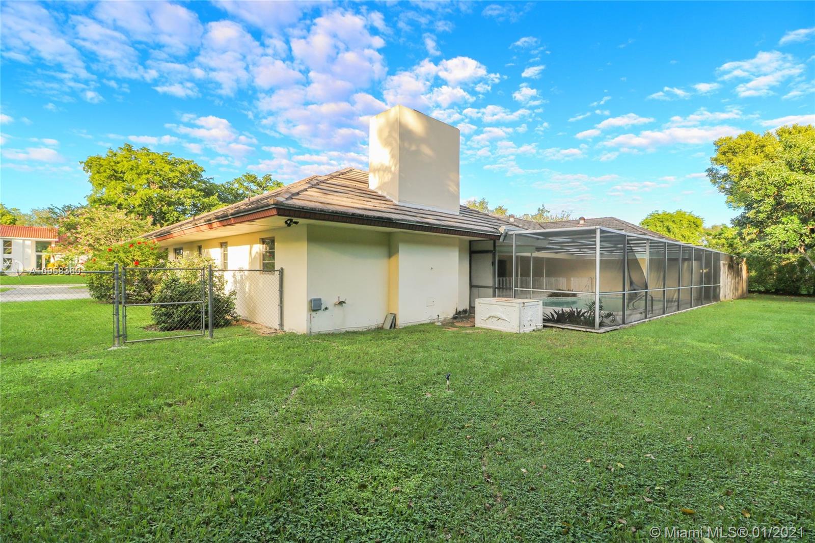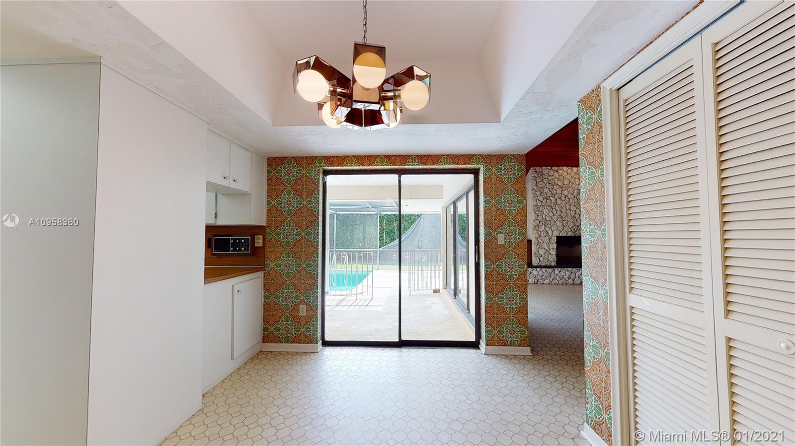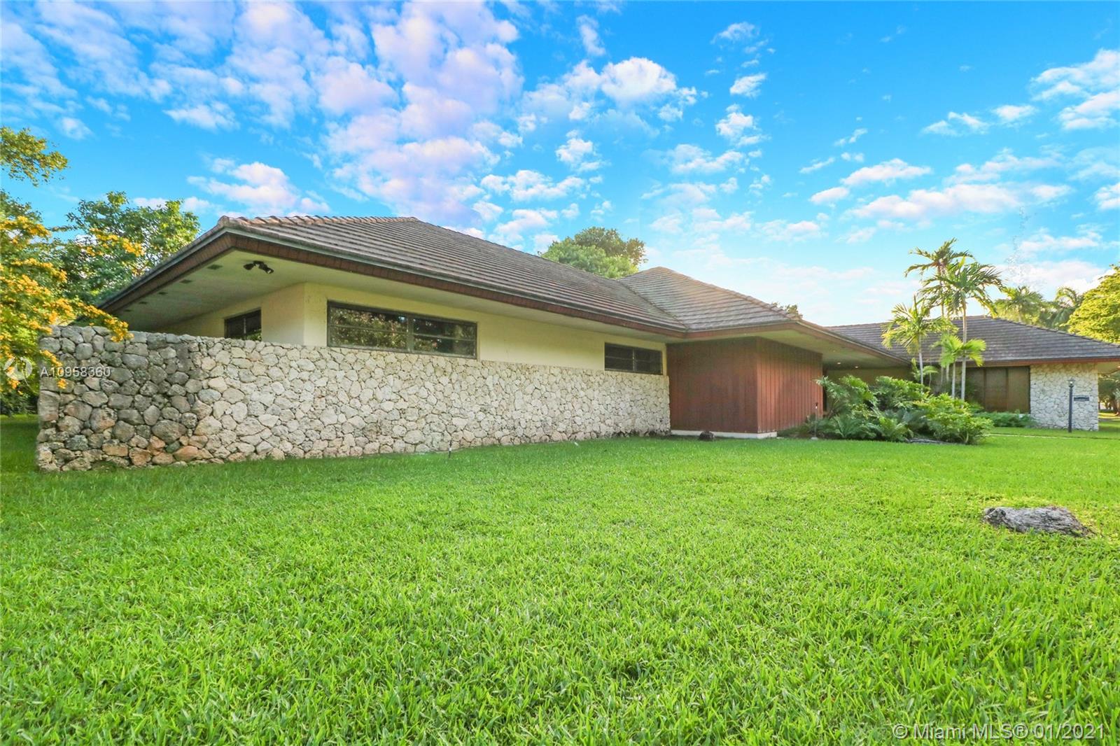 Unique opportunity to own your Coral Gables, Pinecrest-Palmetto school district dream home! This REMODEL-READY 5,283 sqft home w/5 generously-sized bedrooms, 3 ½ baths & oversized 2-car garage sits on ½ acre in prestigious PINE BAY ESTATES CORAL GABLES. This security-patrolled, luxury community is centrally-located at the intersection of tree-lined Red Rd & historic Old Cutler Rd, and is populated with 77 custom-built, multi-million dollar estate homes. The home’s unique features include a vaulted great room w/working fireplace, home office/den w/full bath, expansive covered patio & screened pool, deep walk-in closets. The 800 sqft master suite boasts 2 substantial walk-in closets, dressing room w/2 separate vanities, marble bathroom w/sunken tub overlooking a private walled garden.