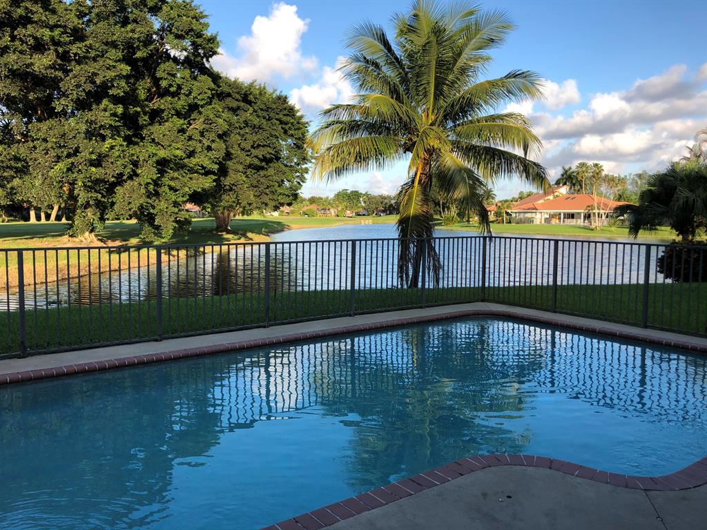 Imagine your own piece of tropical paradise!! Enjoy a spectacular vistas of the golf course, cul-de-sac and best lake view lot in the neighborhood of this Boca Greens home with 3 bedrooms, 2 bath, 2 car garage. Master bath has separate vanities and separate shower/tub. The breakfast area has views of the pool and golf course. Country Club is available but not mandatory. New AC installed 9/2017. Brand New Roof and Water Heater completed in 2018.