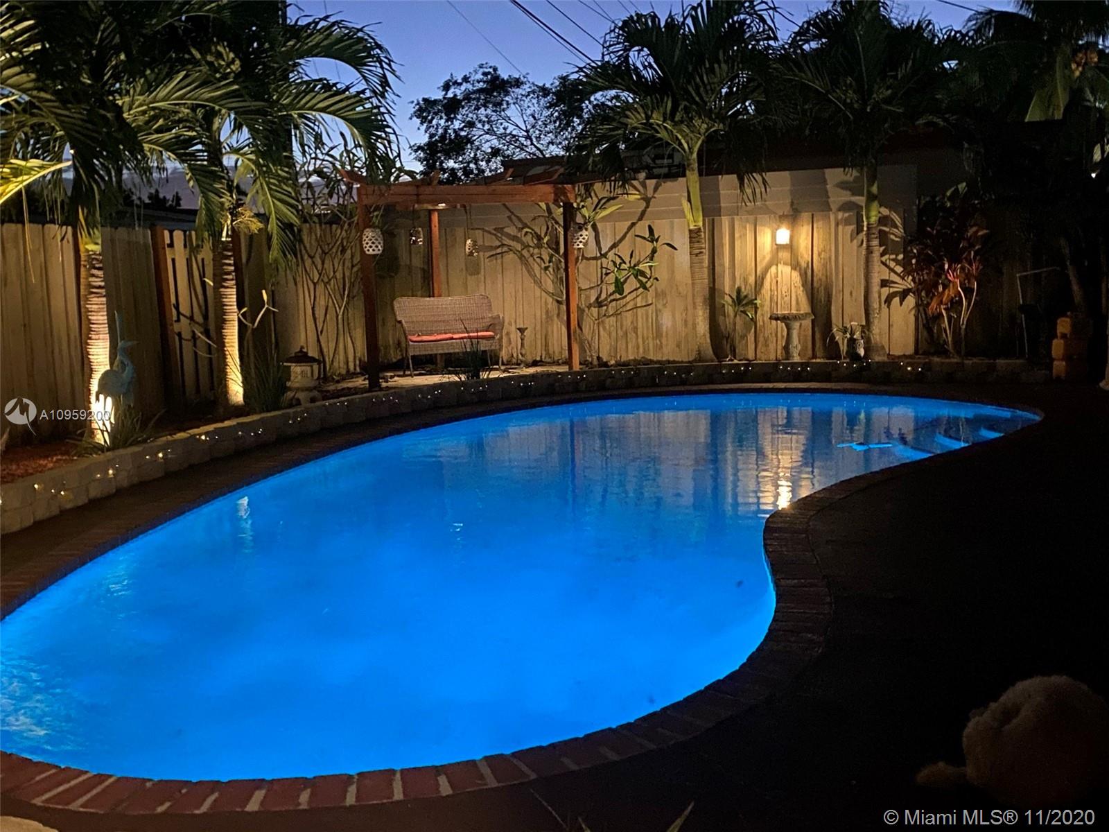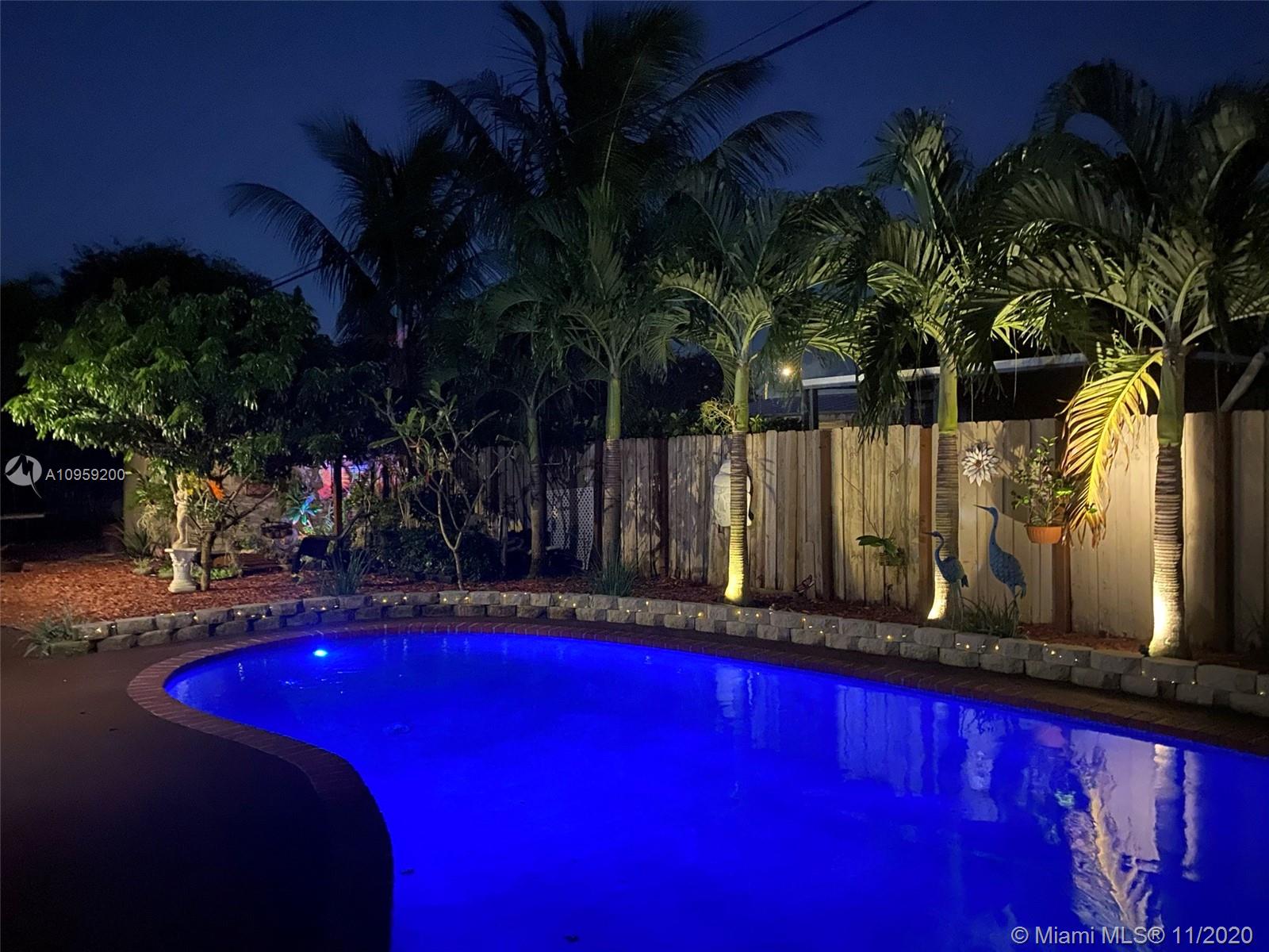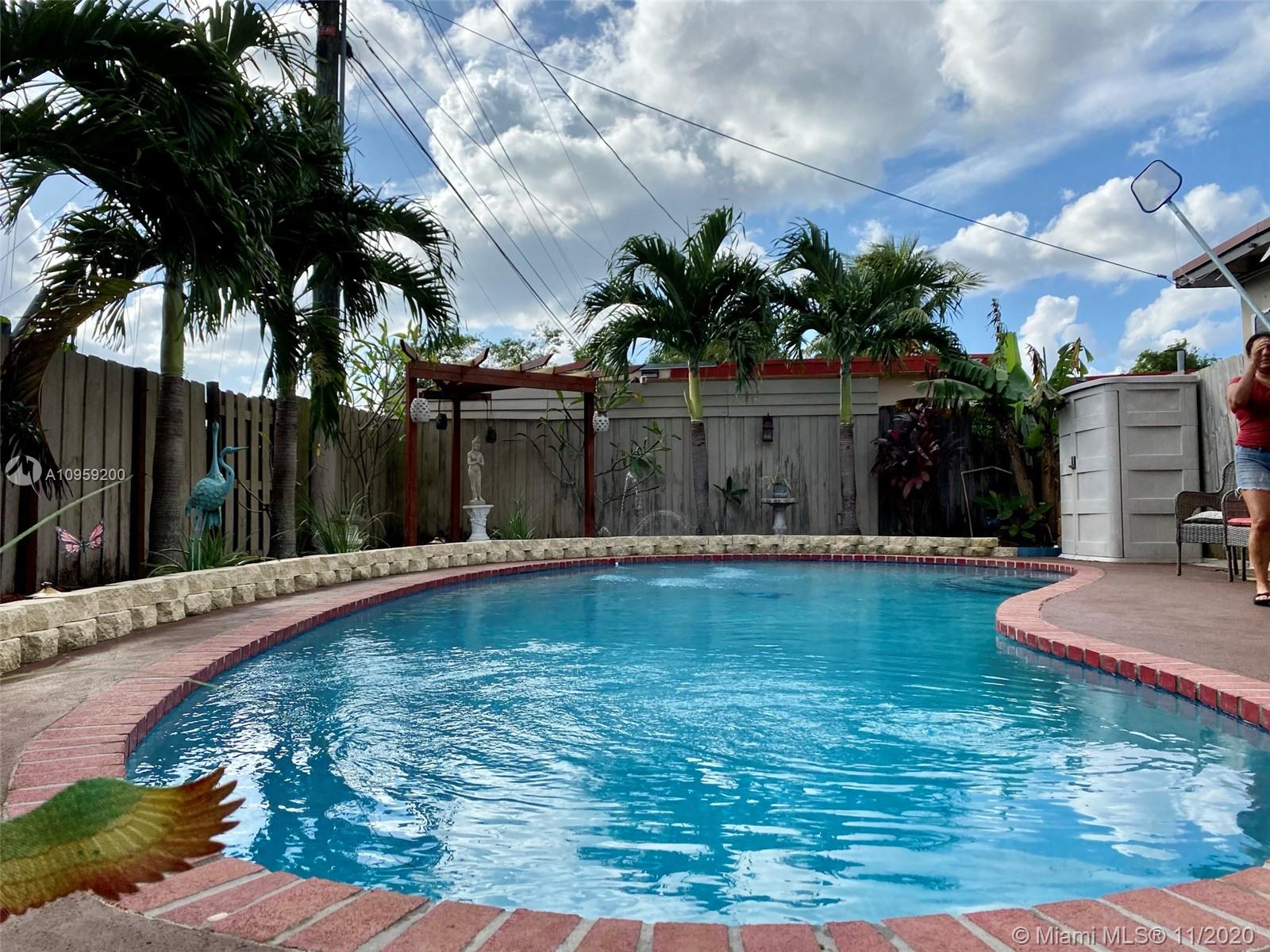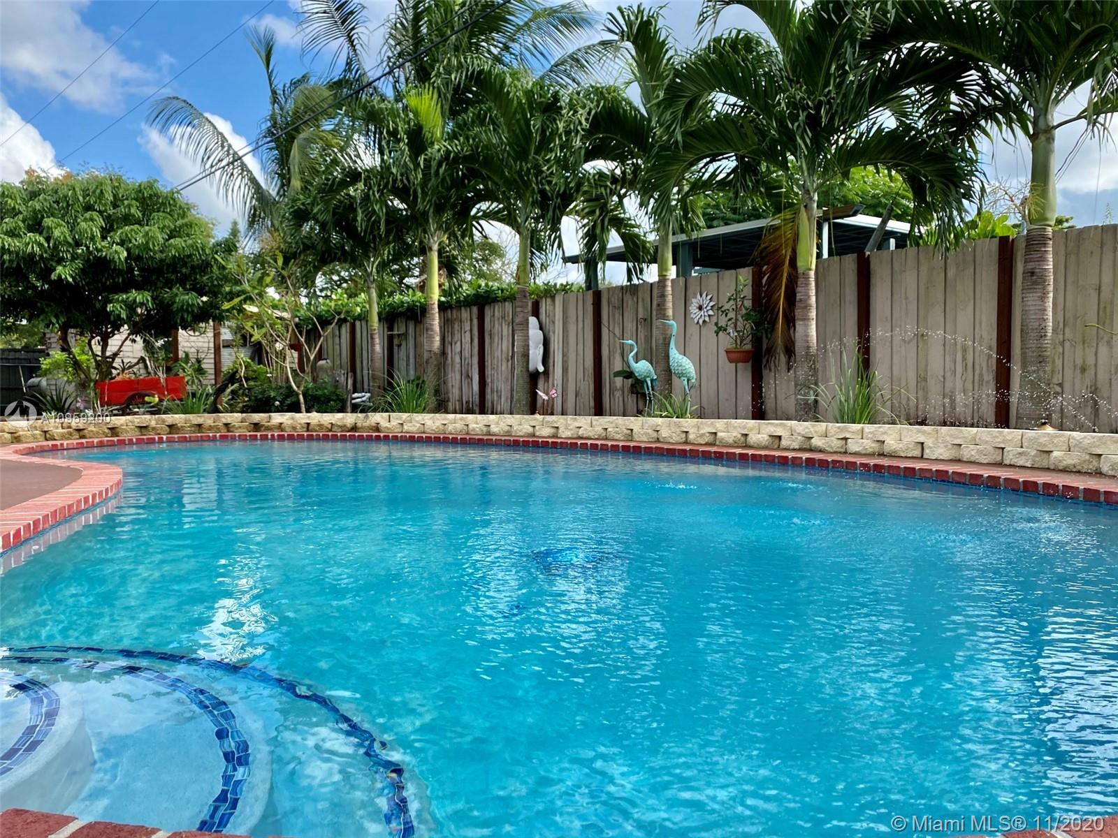 Beautiful pool home on a spacious corner lot with mature tropical trees. This property has four bedroom and three baths which includes an in law quarters with a separate entrance and covered patio. Enjoy Florida living from your spacious screened in patio (bar included), sit and relax by the pond or swim day or night in your private pool. This property features an open concept, granite counters and stainless steel appliances with gas stove, family room, light tile in main areas, metal roof, brand new AC with UV light, accordion shutters, new insulation, tankless water heater, large shed, fenced yard with side entrance, new plumbing under pool and new diamond bright, newer electrical and alarm system. Close to the turnpike, Broward College and quick drive to the beach. No association.