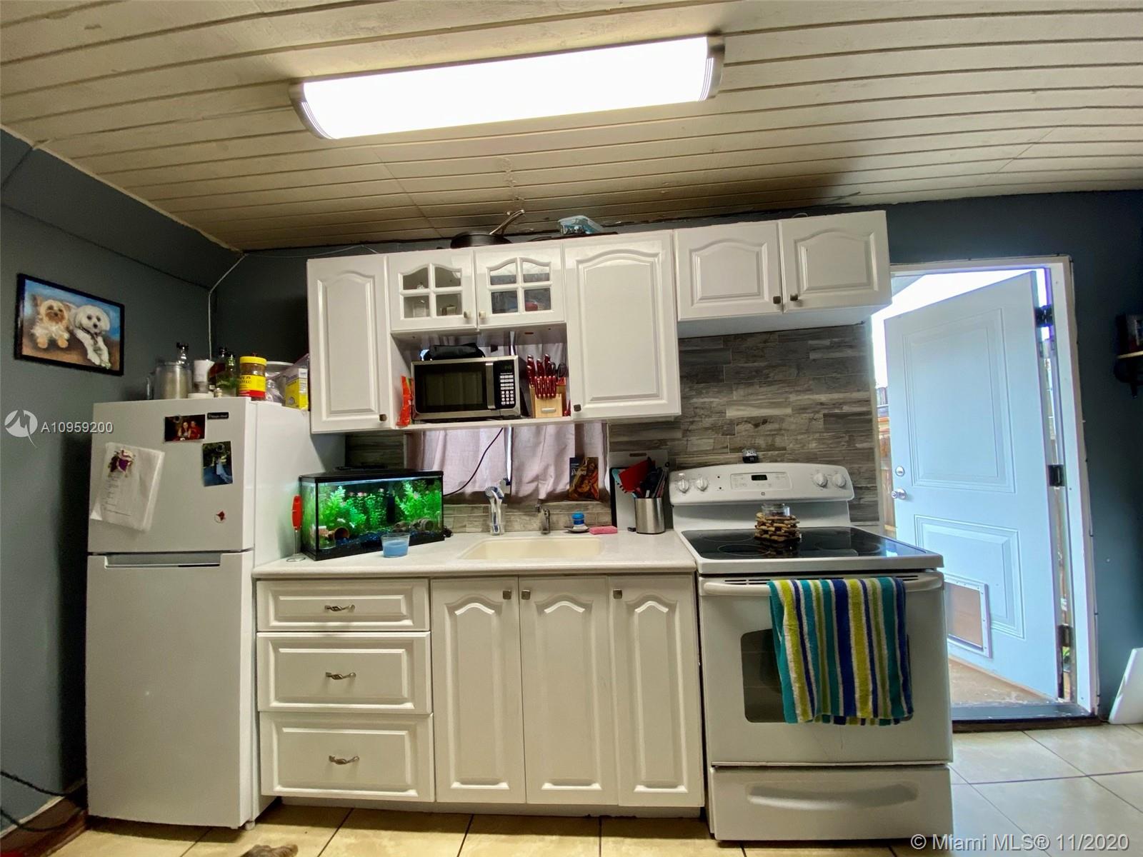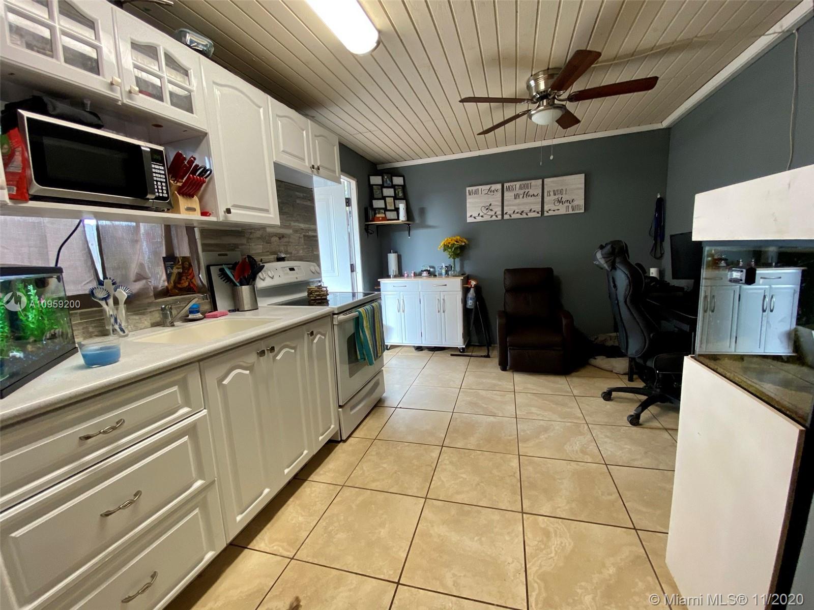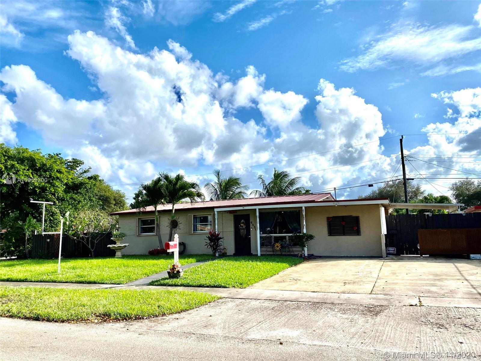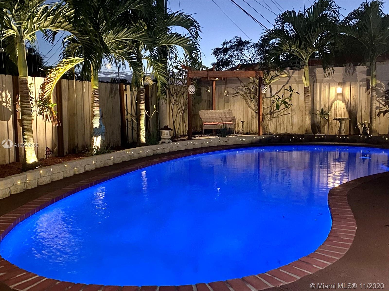 Beautiful pool home on a spacious corner lot with mature tropical trees. This property has four bedroom and three baths which includes an in law quarters with a separate entrance and covered patio. Enjoy Florida living from your spacious screened in patio (bar included), sit and relax by the pond or swim day or night in your private pool. This property features an open concept, granite counters and stainless steel appliances with gas stove, family room, light tile in main areas, metal roof, brand new AC with UV light, accordion shutters, new insulation, tankless water heater, large shed, fenced yard with side entrance, new plumbing under pool and new diamond bright, newer electrical and alarm system. Close to the turnpike, Broward College and quick drive to the beach. No association.