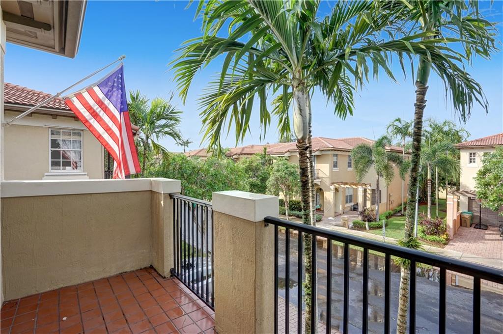 Charming townhouse nestled in the highly desired, Cimarron of Davie. This south Florida jewel boasts 3 bedrooms, 2.5 baths, galley kitchen complete with granite counters and expansive pantry. Open floor plan. Light and bright, with elegant balconies off every bedroom and stylish plantation shutters throughout. Fabulous outdoor space with large fenced-in patio ideal for Floridian entertaining, or kids and pets at play. One car garage, plus additional parking in driveway. Community boasts pool and child play area. Minutes from shopping, schools, and scenic parks.