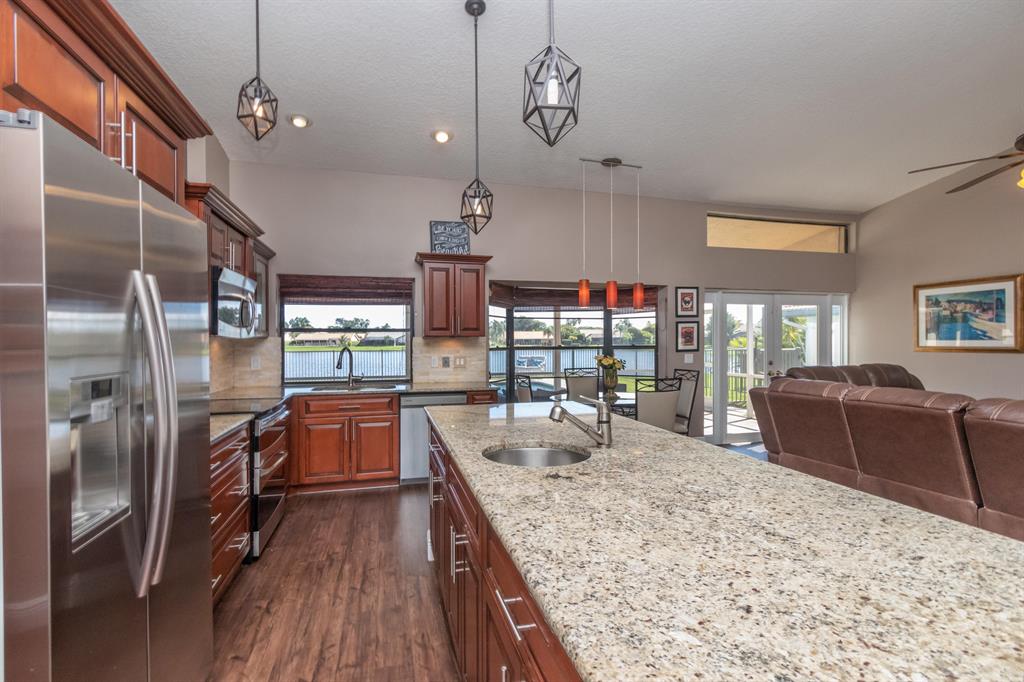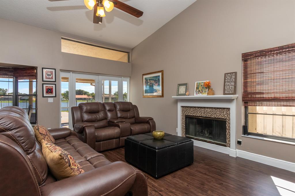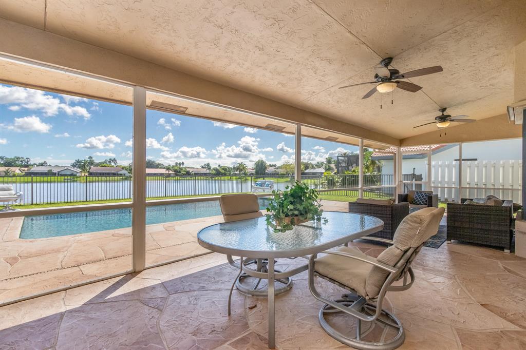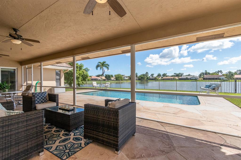 Gorgeous lakefront pool home with southern exposure in gated West Boca community of Island Lakes! This fabulous 4 bedroom, 2.5 bath house boasts an open and airy floor plan with prime water views and an oversized pool/patio area & yard perfect for entertaining. Gourmet chef inspired dark wood kitchen has plenty of storage, pull outs, granite counters and stainless appliances. Family room with fireplace leads out to giant screened and roofed patio overlooking pool with endless lake views. Luxury vinyl tile in all main living areas with laminate in the bedrooms. Master suite has two large walk in closets. Enjoy water views from almost every room. Brand new A/C October 2020, roof 2006, and hurricane protection throughout. Minutes to A rated schools, shopping, dining and South County parks.