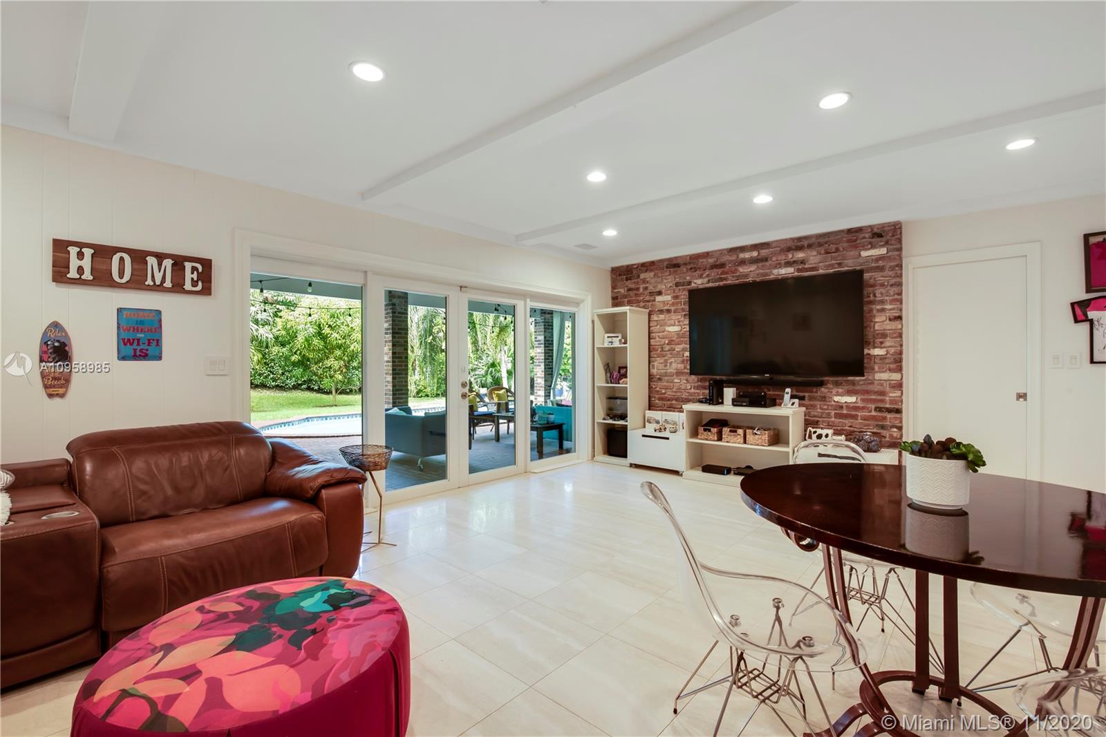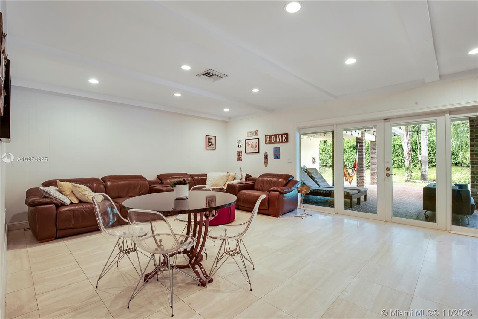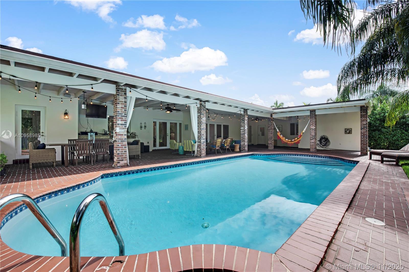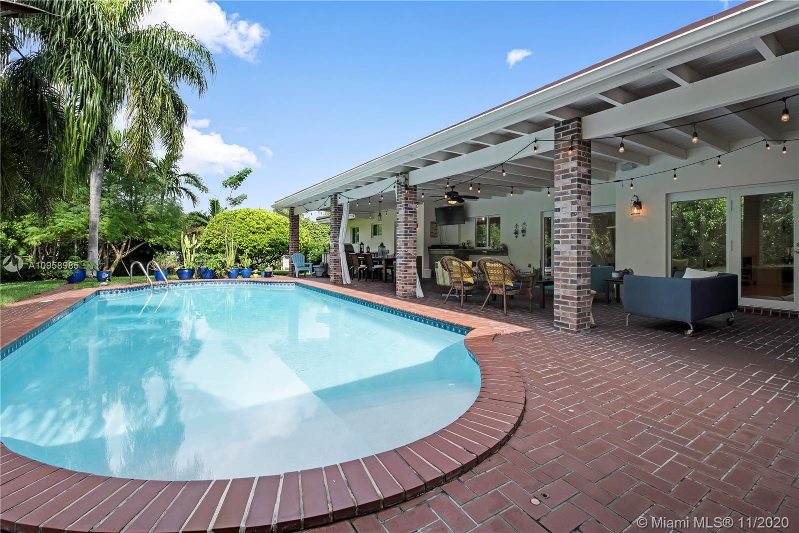 Charming home with an inviting floor plan in a very calm street located in the heart of Pinecrest. Walk to a foyer with a glass winter garden, followed by an open living room that interacts w dining room, huge family room, kitchen w top of the line appliances overlooking pool and backyard. Ample master suite w large walk-in closet & pool views, 4 guest beds & 4 baths remodeled. Summer kitchen, 2 car garage w plenty of storage, new driveway, all impact windows & doors. Walking distance to the best schools! Easy to show.