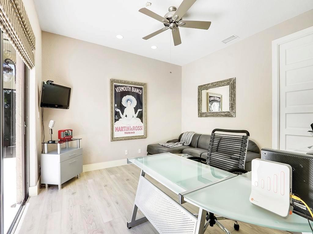 Unique, Expansive Courtyard Home, with Park Like BackYard. The Perfect Setting for Today's ''Play-At-Home Lifestyle''. Exceptional 4 bedroom, 4 bath courtyard home with a private park like pet friendly backyard. Perfect for a putting green or kid's slide. Enter into a courtyard that is truly unique, spacious, tropical, and perfect for entertaining or volleyball in the pool. The main house has 3 bedrooms with a 4th bedroom and bath in the guest house. The welcoming interior has an open floor plan, high ceilings, marble floors in main living areas. Updated kitchen with solid raised panel cabinetry, granite counters, Jenn-Air appliances and an expansive dining island. Clean and contemporary with high-end finishes. Updated bathrooms, bedrooms feature new flooring 2020.